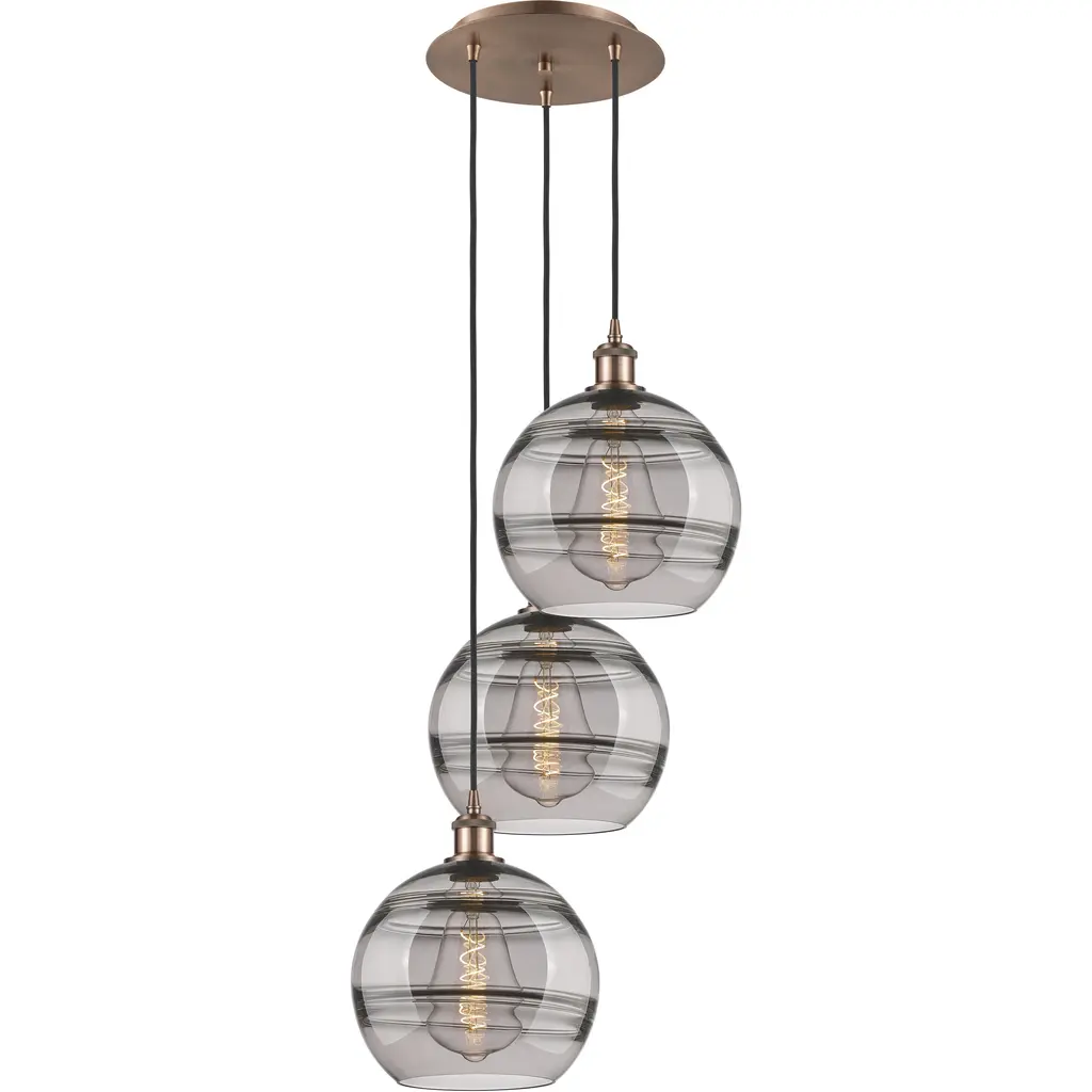 Coppa Round Multi-Port-05-Flat Bronze-Optic Blown Glass - Smoke-Bronze Cloth Braided Cord-E26