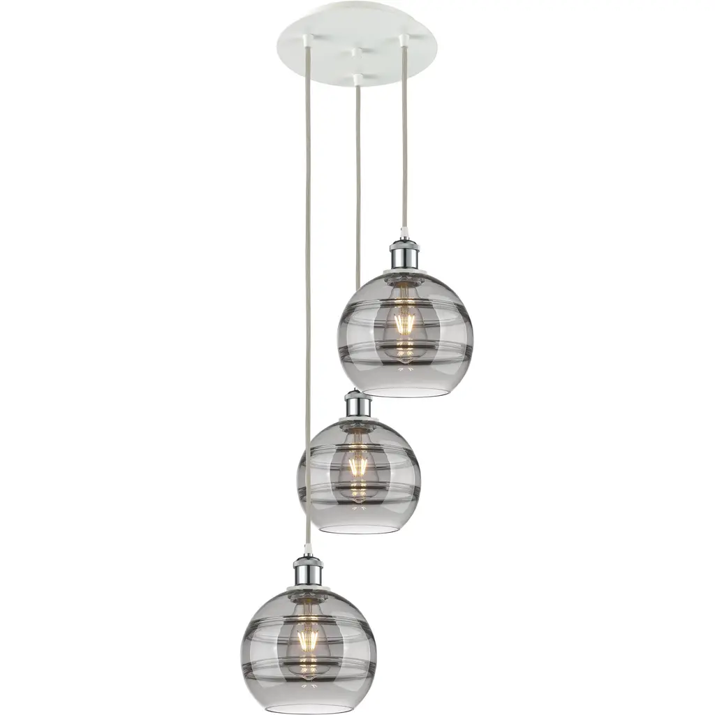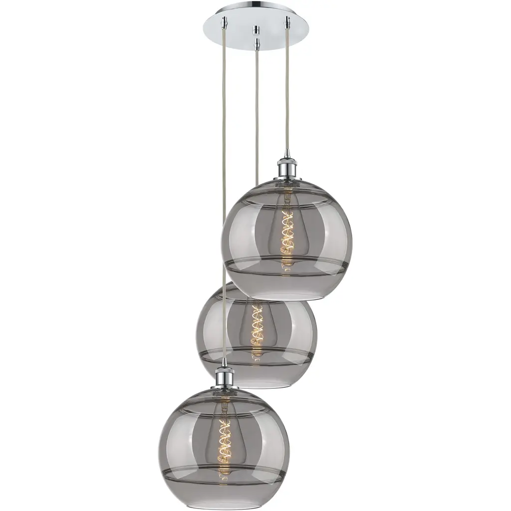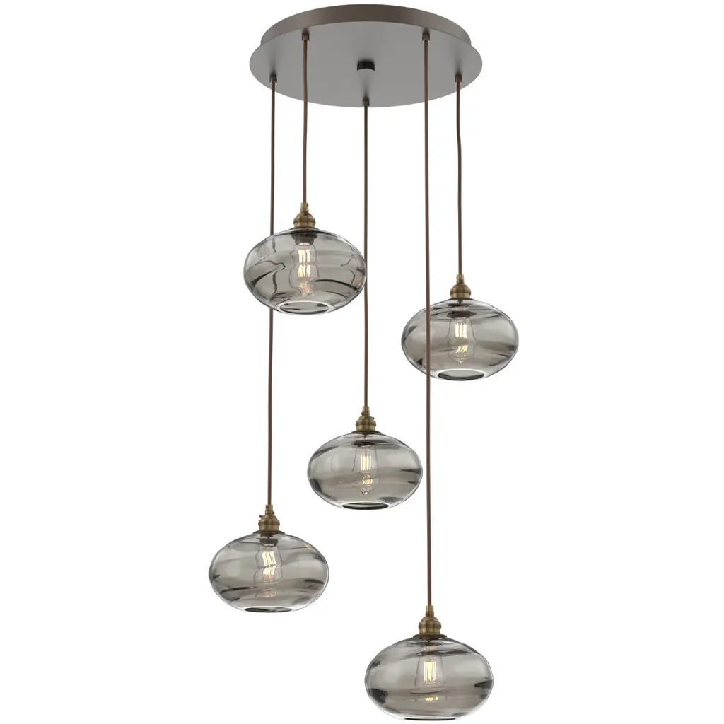 Coppa Round Multi-Port-05-Matte Black-Optic Blown Glass - Smoke-Black Cloth Braided Cord-E26
