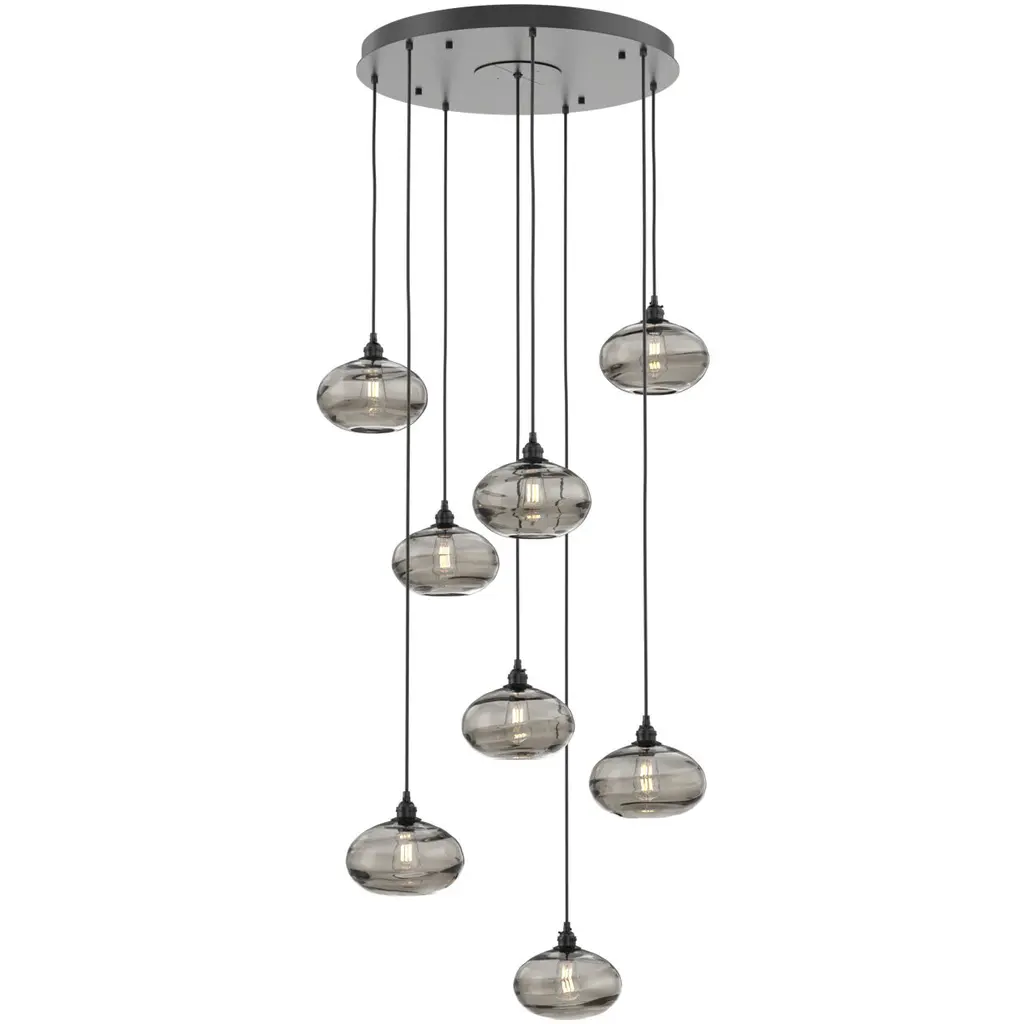 Coppa Round Multi-Port-08-Gilded Brass-Optic Blown Glass - Smoke-Brass Cloth Braided Cord-E26