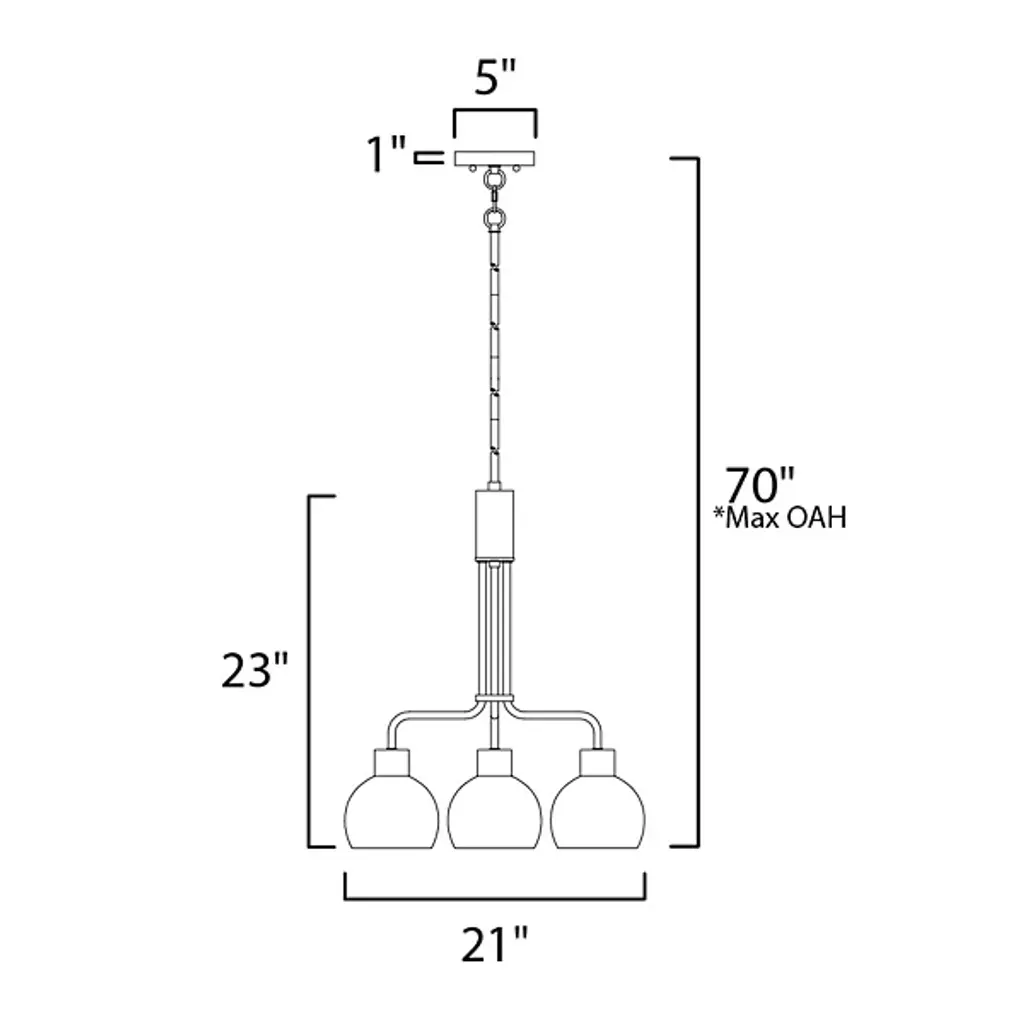 A sleek and clean modern piece, the Coraline Chandelier from Maxim Lighting provides a warm and welcoming layer of light in the space below. Descending from the ceiling by way of a slim and lengthy downrod, this piece holds three open satin white shades, each at the end of their own downrods. The bulb within each shade fills the enclosure with light, and the opening at the bottom ensures the light spreads even and free.
