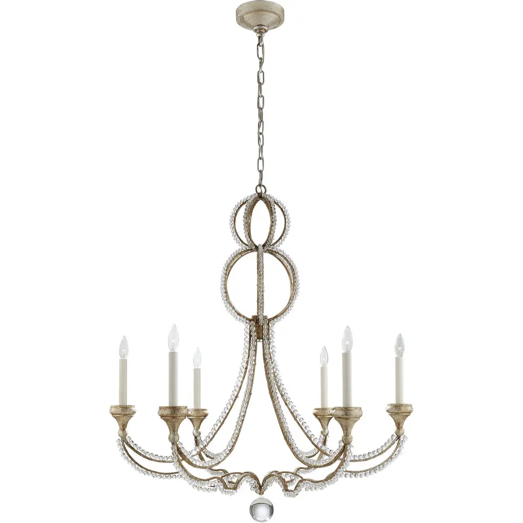 Cordoba is a feast of rich textures and organic details creating a sense of bohemian sophistication. The center column is hand-wrapped with lightly aged rope while hand-turned pendalogues and bobeches of sun-bleached wood add a natural elegance.
