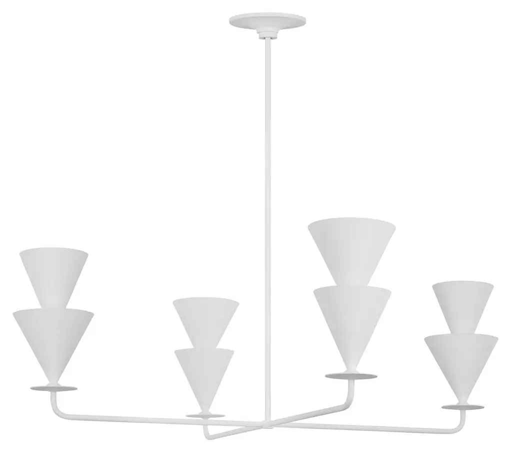 The white plaster finish ensures that this four-arm chandelier is a bright spot even when it's not turned on. In addition to being damp rated, the chandelier can be mounted on a sloped ceiling