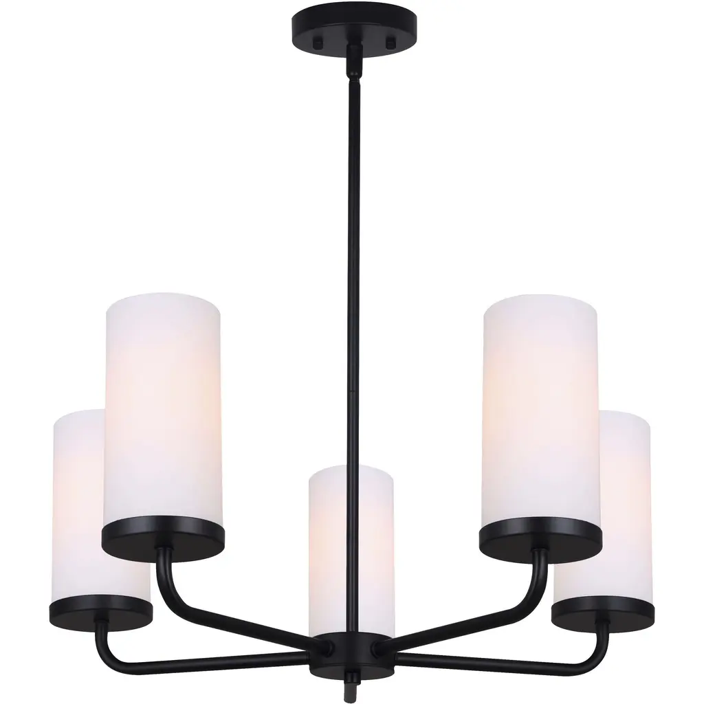 Corona 5 Light 22 Inch Black Single-Tier Chandelier Ceiling Light In Frosted