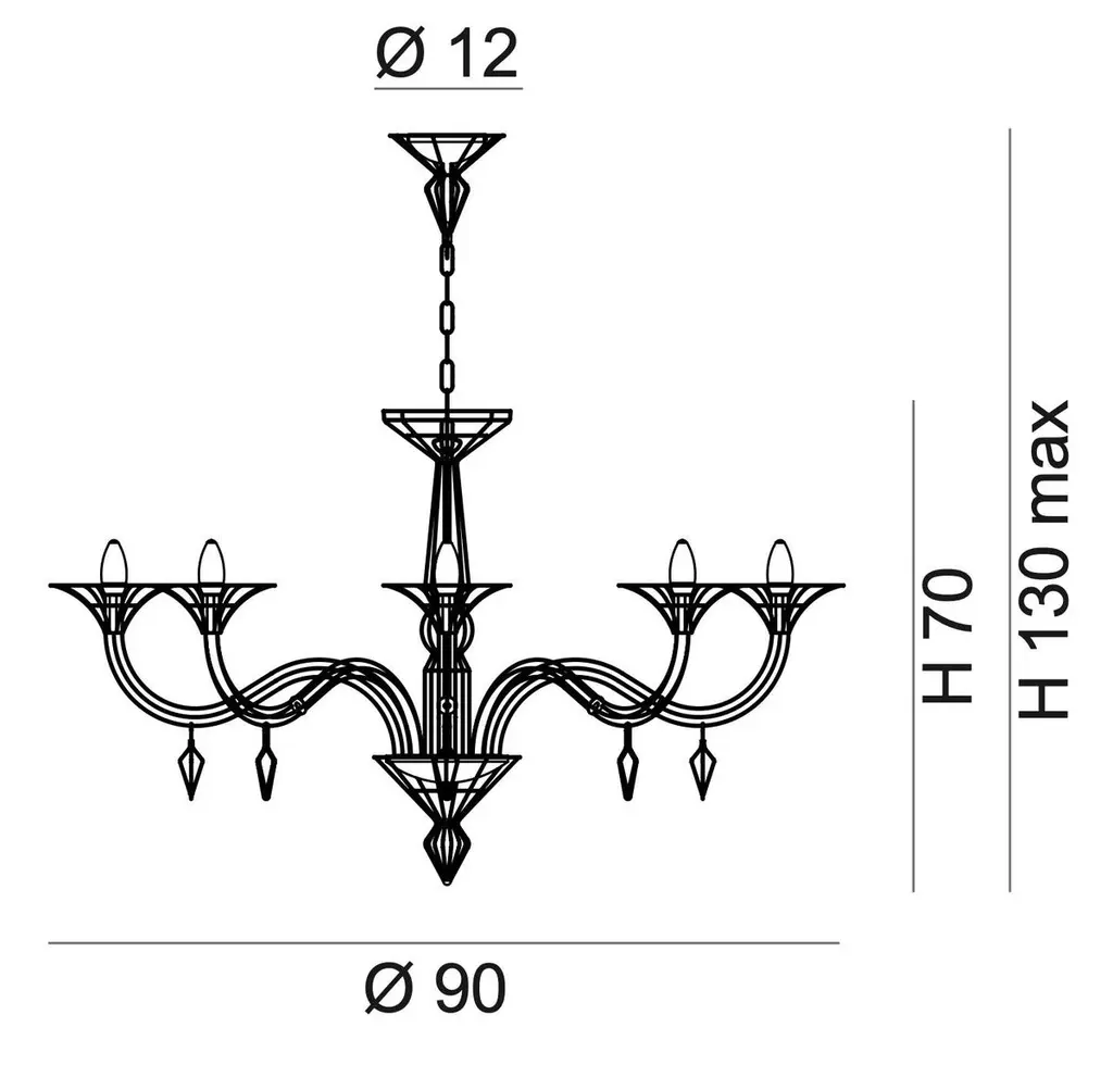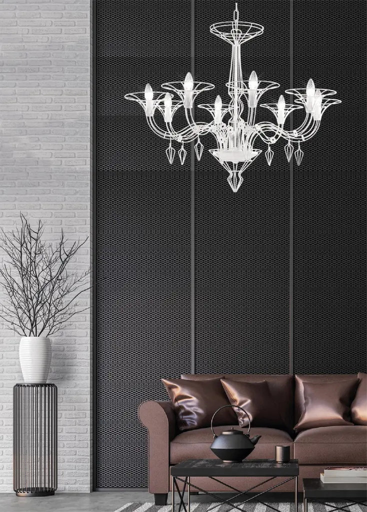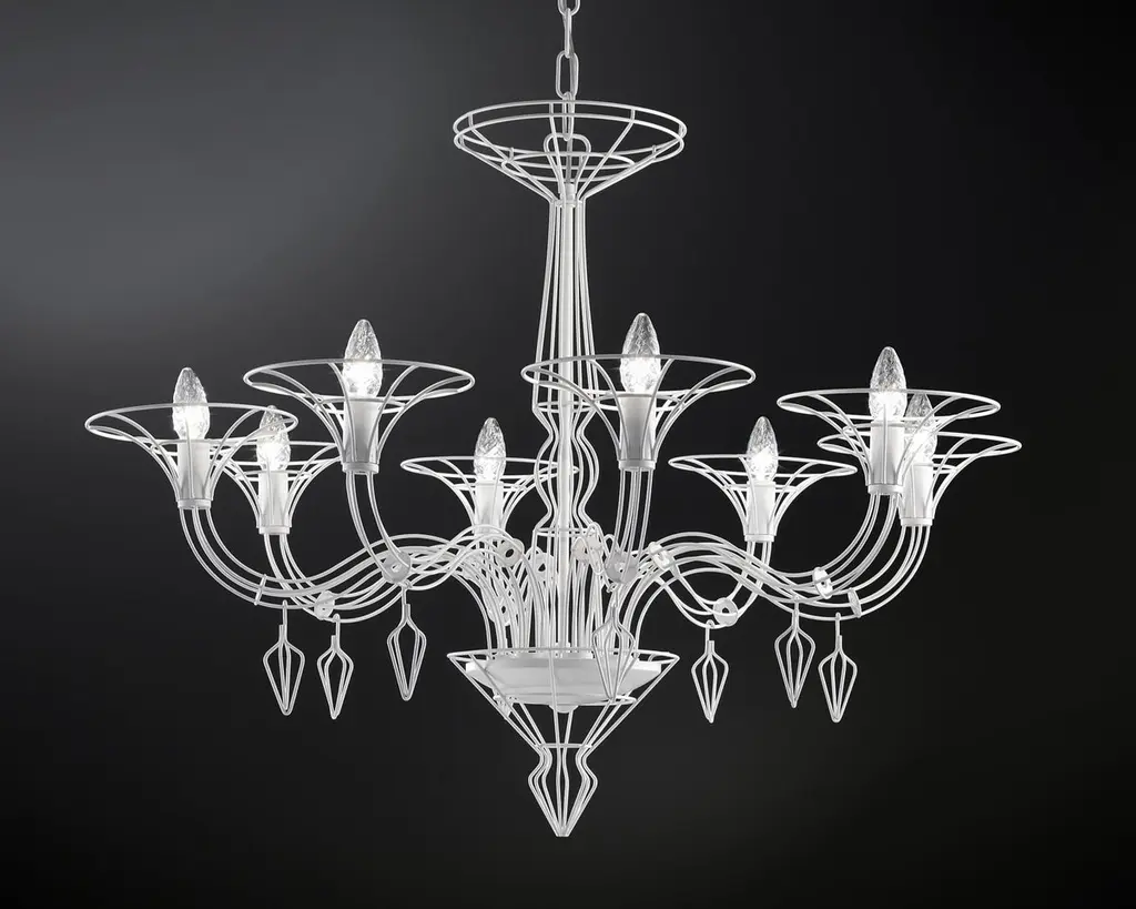 Contemporary Italian chandelier with a metal frame in white color resembling a traditional Venetian Murano chandelier / Made in Italy by Fabio LtdDiameter: 35.5 inches / Height: 27.5 inches plus chain and canopy8 lights / E12 or E14 type / max 40W eachOrder only / This item ships from ItalyOrder Reference #: FABIOLTD C886 WHITEThe listed price applies to White, Burnished, and Chrome finishesMatte Gold finish available with upcharge of $300