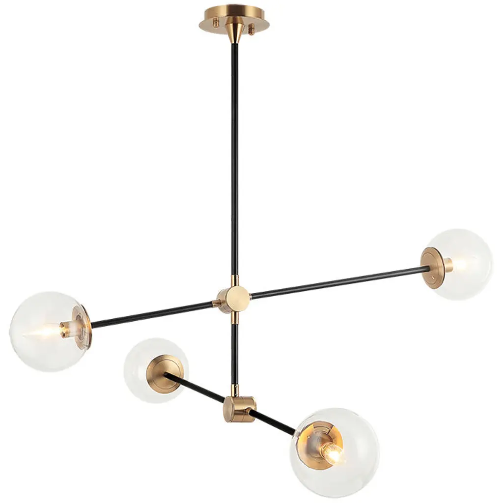 Cosmic 4 Light 38 Inch Aged Gold Brass Chandelier Ceiling Light In Aged Gold Brass And Clear