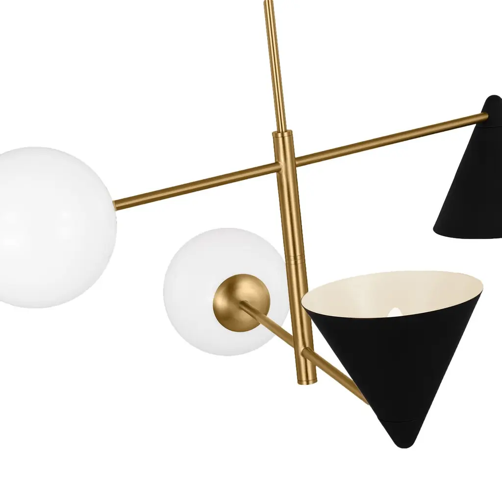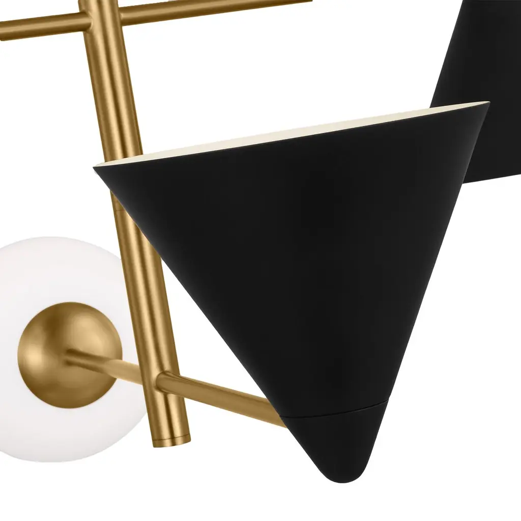 Who knew geometry could be so chic? This four-arm chandelier features two triangular metal shades and two glass globes connected to slender rods given a burnished brass finish. Because the chandelier is damp rated, you can hang it in your bathroom as well as just about anywhere else in your home.