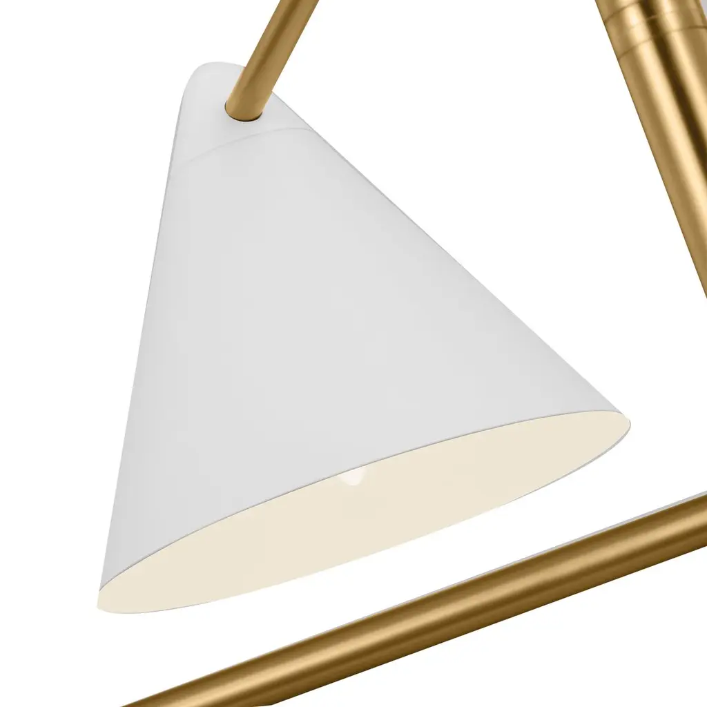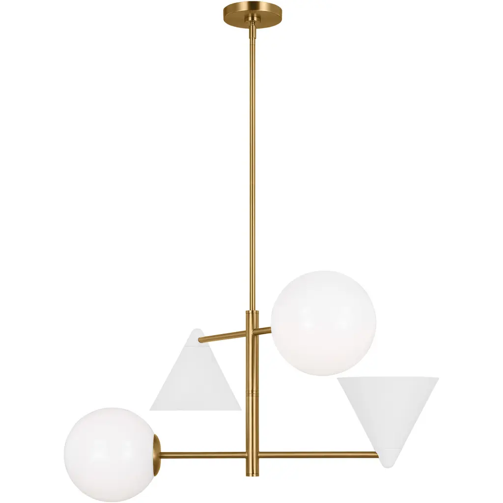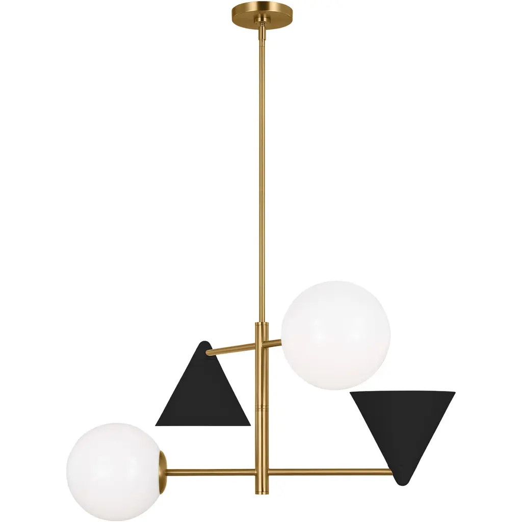 Who knew geometry could be so chic? This four-arm chandelier features two triangular metal shades and two glass globes connected to slender rods given a burnished brass finish. Because the chandelier is damp rated, you can hang it in your bathroom as well as just about anywhere else in your home.
