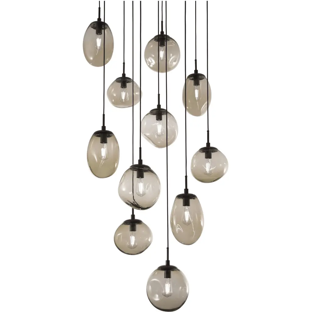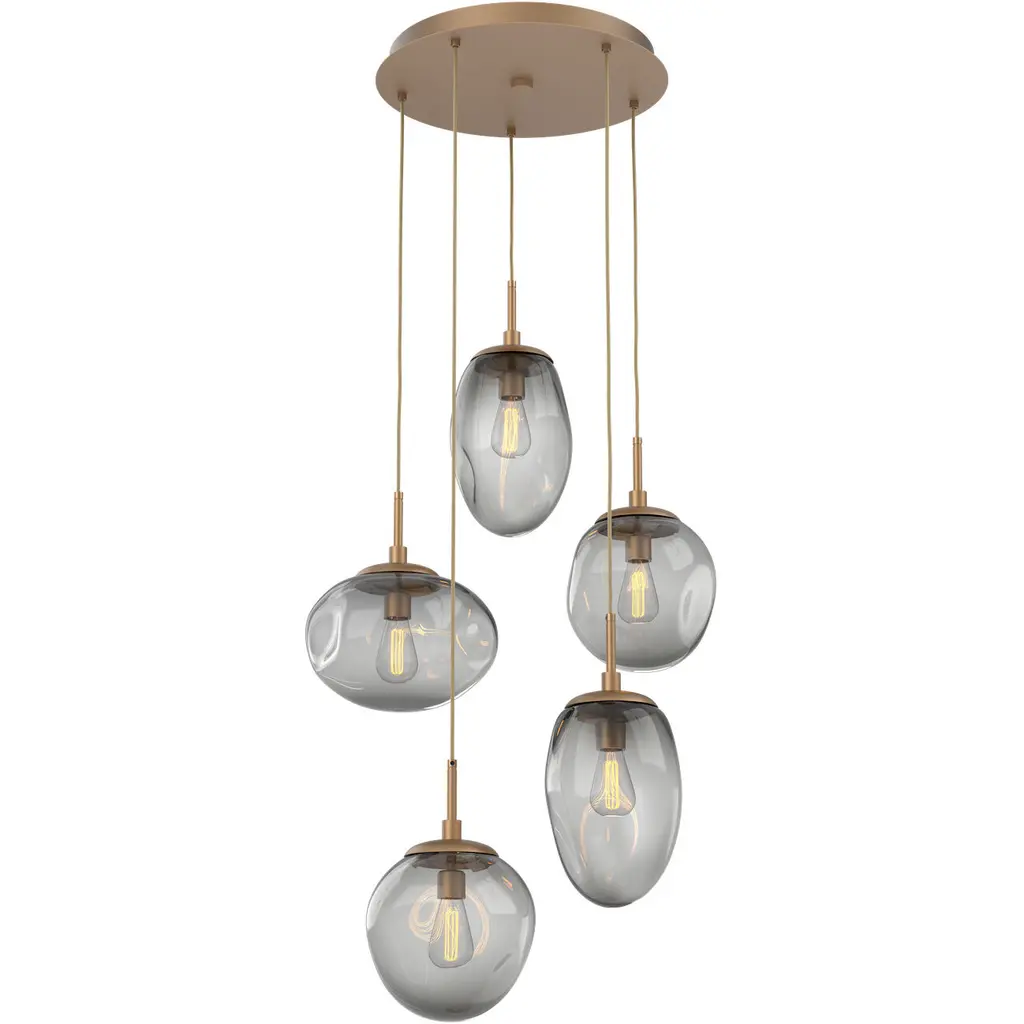 Cosmos Round Multi-Pendant-5PC-Incandescent-Burnished Bronze-Smoke Blown Glass-Cloth Braided Cord-E26