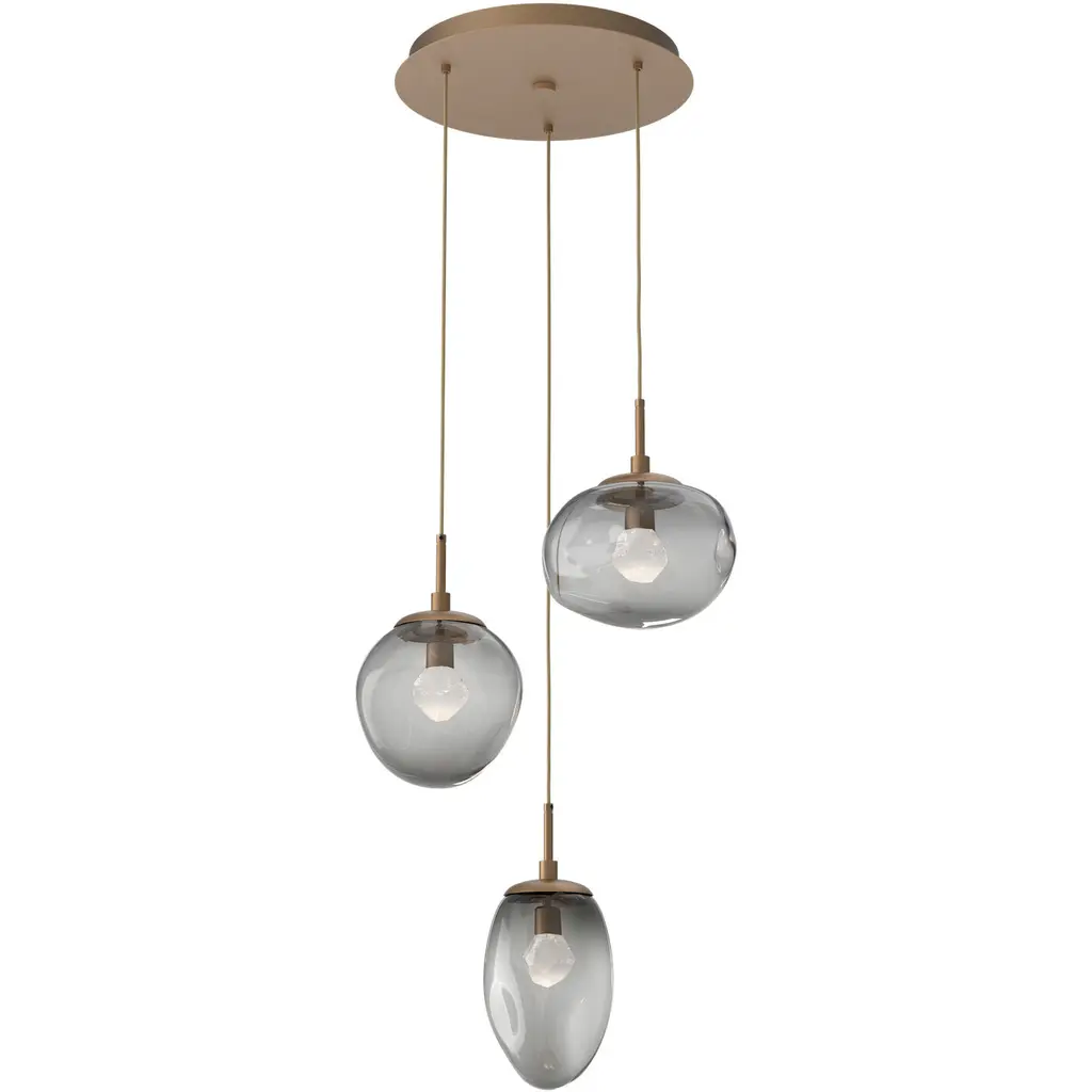 Cosmos Round Multi-Pendant-3PC-LED-Burnished Bronze-Zircon Inner - Smoke Outer-Cloth Braided Cord-LED 3000K