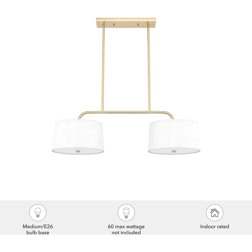 Bring the light closer to the action in your kitchen, bonus room or home office with the Cottage Hill 4 light 2 Shade Linear Chandelier. The fixture’s blend of clean lines and subtle curves transitions easily into any setting, while the Cottage Hill’s crisp, textured shades evenly distribute light throughout the room.