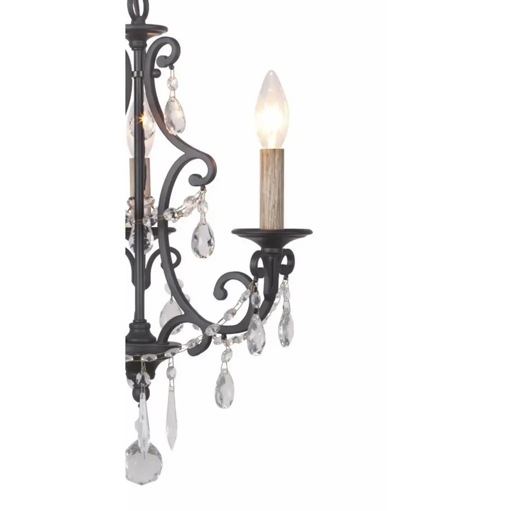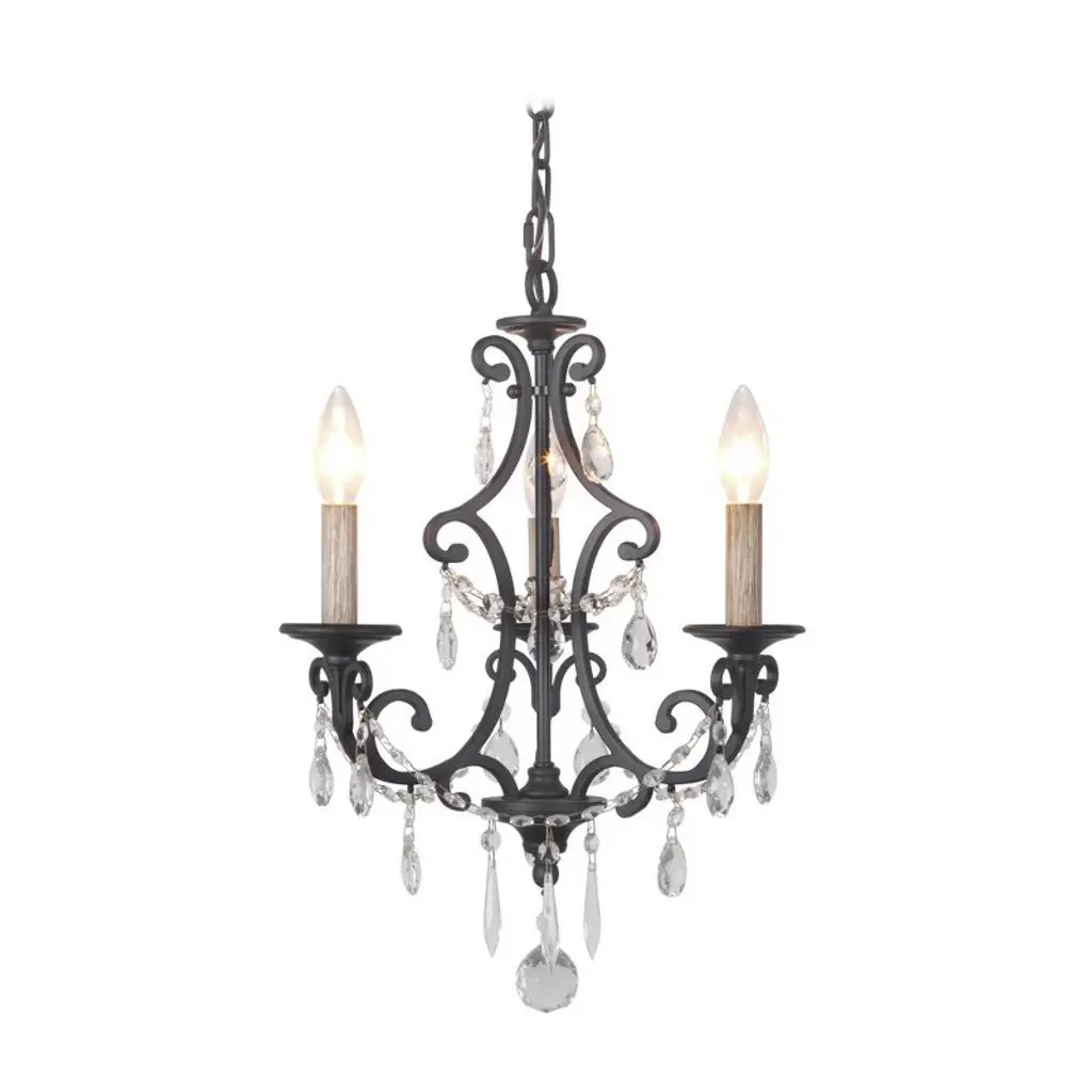 Bentley 3 Light Chandelier in Matte Black With elegant scrollwork and decorative flourishes, Craftmade’s Bentley collection captures the look and feel of hand-crafted wrought iron down to the last meticulous detail. Features: Product Type: Indoor Ceiling Lighting - Chandelier Material: Steel Style: Traditional Finish: Matte Black Outdoor: No Bulb Included: No Safety Rating: cULus Warranty: 1 Year