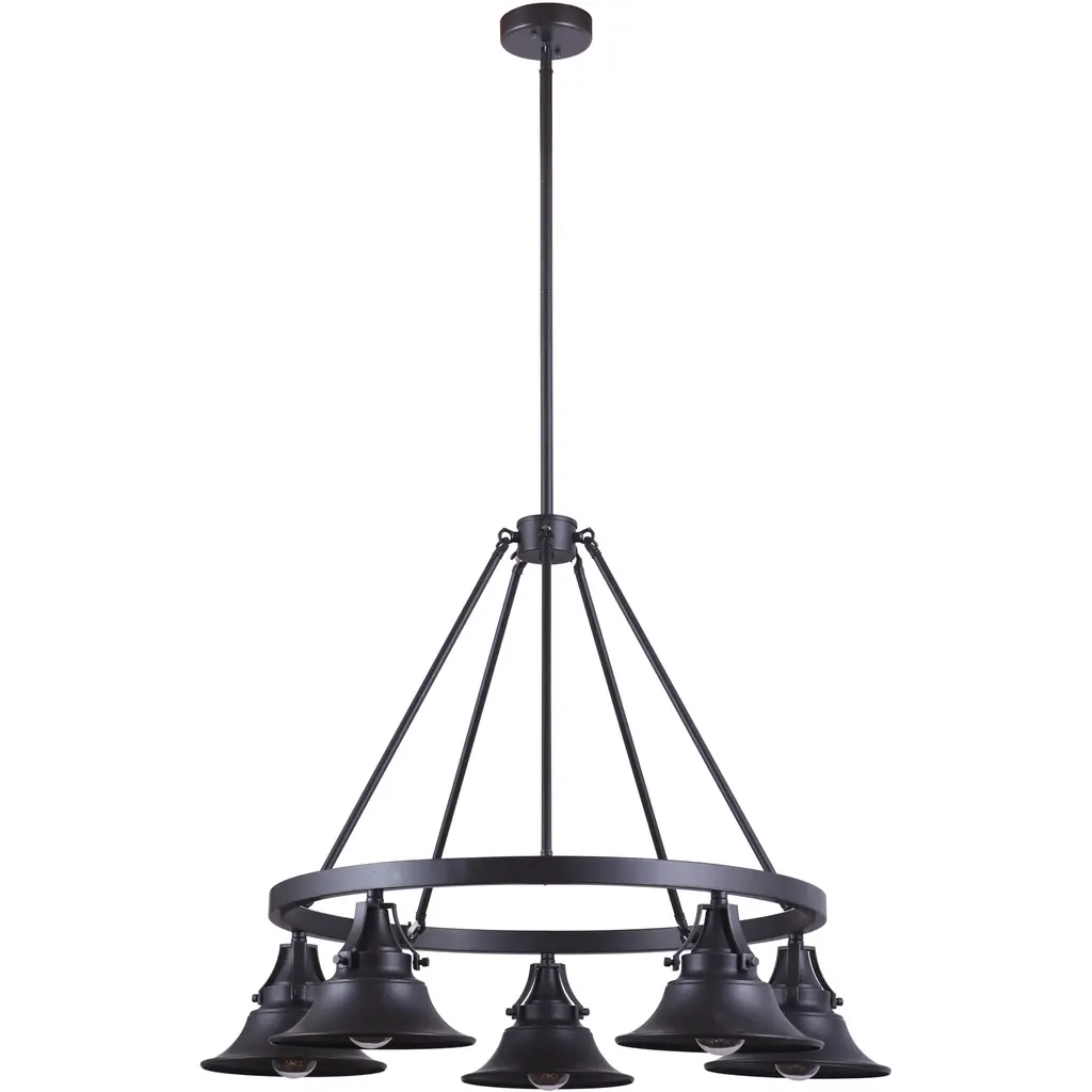 Timarron 3 Light Down Chandelier in Aged Bronze Brushed Boasting a stellar sense of industrial chic style, the Timarron is a contemporary showstopper. From chandeliers to pendants, sconces, and beyond, find a fixture for any room in your home. With hammered metal shades and visually strong lines, the design is light years away from the rest. Features: Product Type: Indoor Ceiling Lighting - Down Chandelier Material: Steel Style: Transitional Finish: Aged Bronze Brushed Outdoor: No Bulb Included: No Shade/Glass Material: Hammered Metal Glass/Shade Finish: Aged Bronze Brushed Safety Rating: cULus Warranty: 1 Year