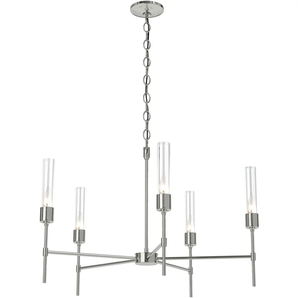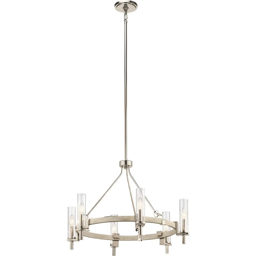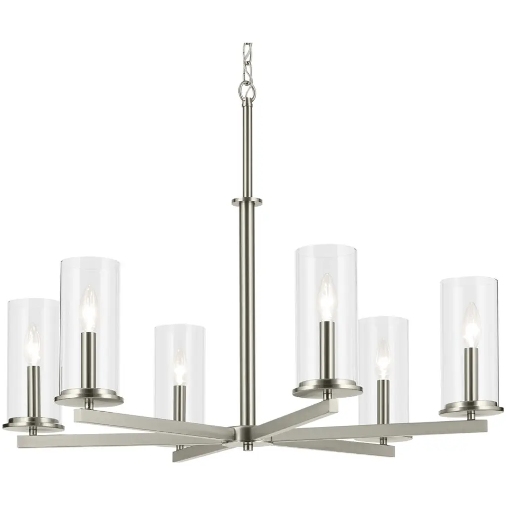 Get a taste of versatility at its finest with the simple look and feel of the Crosby 6-light 1-tier chandelier. Crosby's streamlined design with clean lines and modest form make it the ideal addition to soft modern environments. Its clear glass shades create a soft, ambient glow and easily incorporates with minimalistic decor.