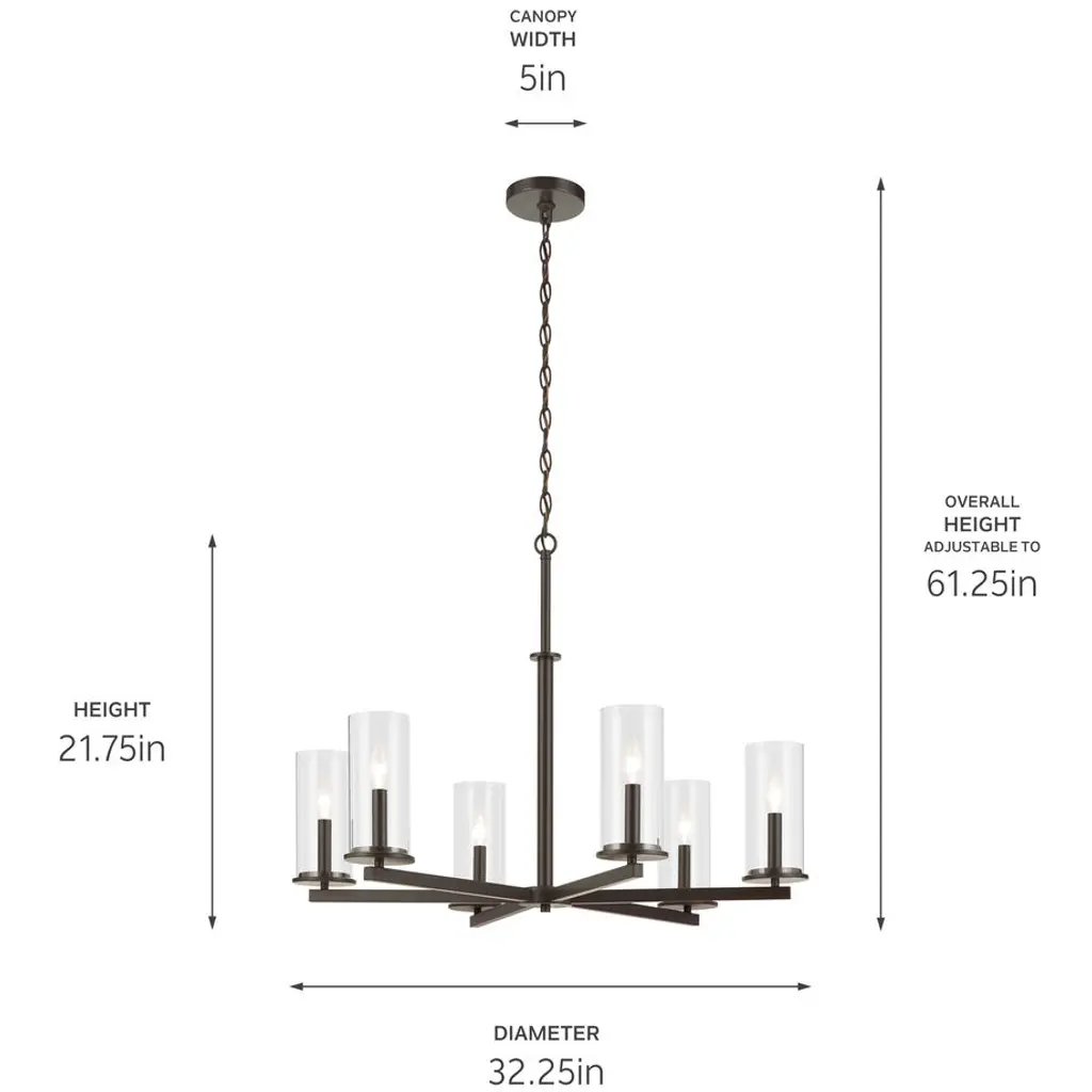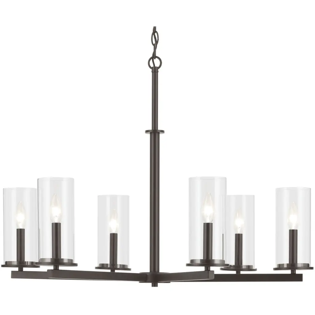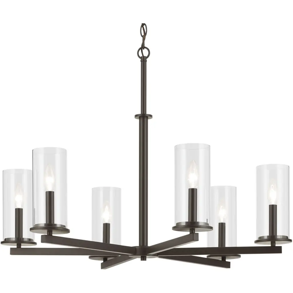 Get a taste of versatility at its finest with the simple look and feel of the Crosby 6-light 1-tier chandelier. Crosby's streamlined design with clean lines and modest form make it the ideal addition to soft modern environments. Its clear glass shades create a soft, ambient glow and easily incorporates with minimalistic decor.