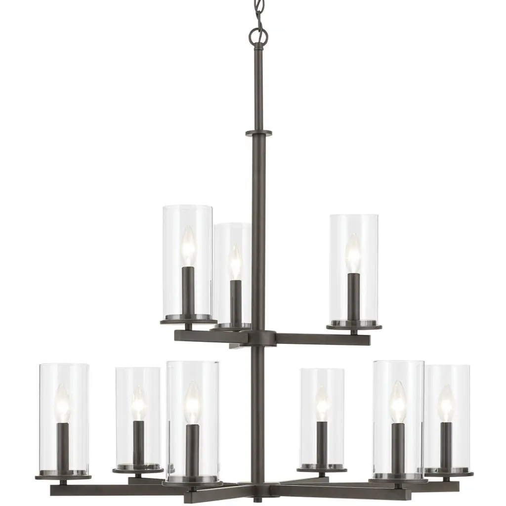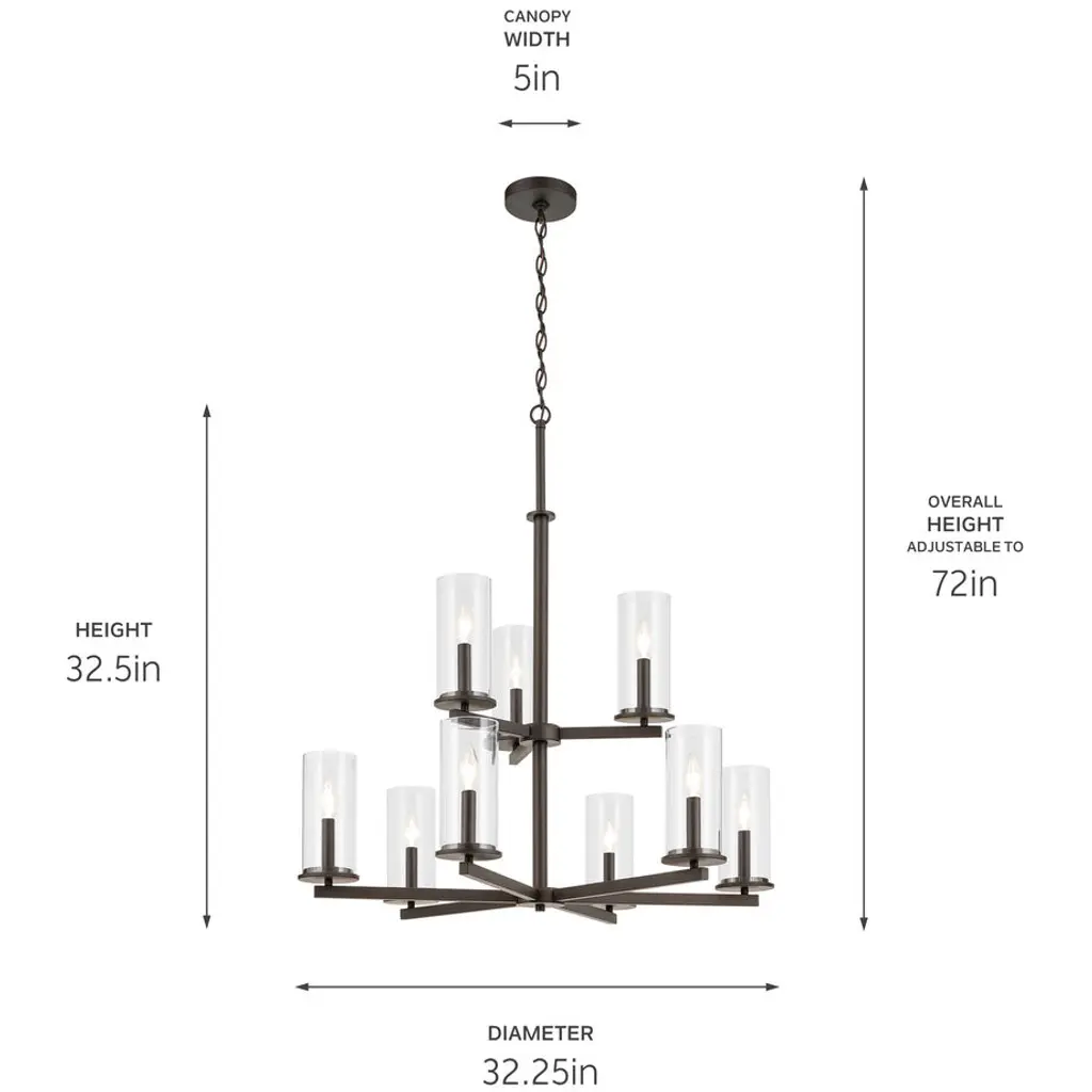 Get a taste of versatility at its finest with the simple look and feel of the Crosby 9-light 2-tier chandelier. Crosby's streamlined design with clean lines and modest form make it the ideal addition to soft modern environments. Its clear glass shades create a soft, ambient glow and easily incorporates with minimalistic decor.