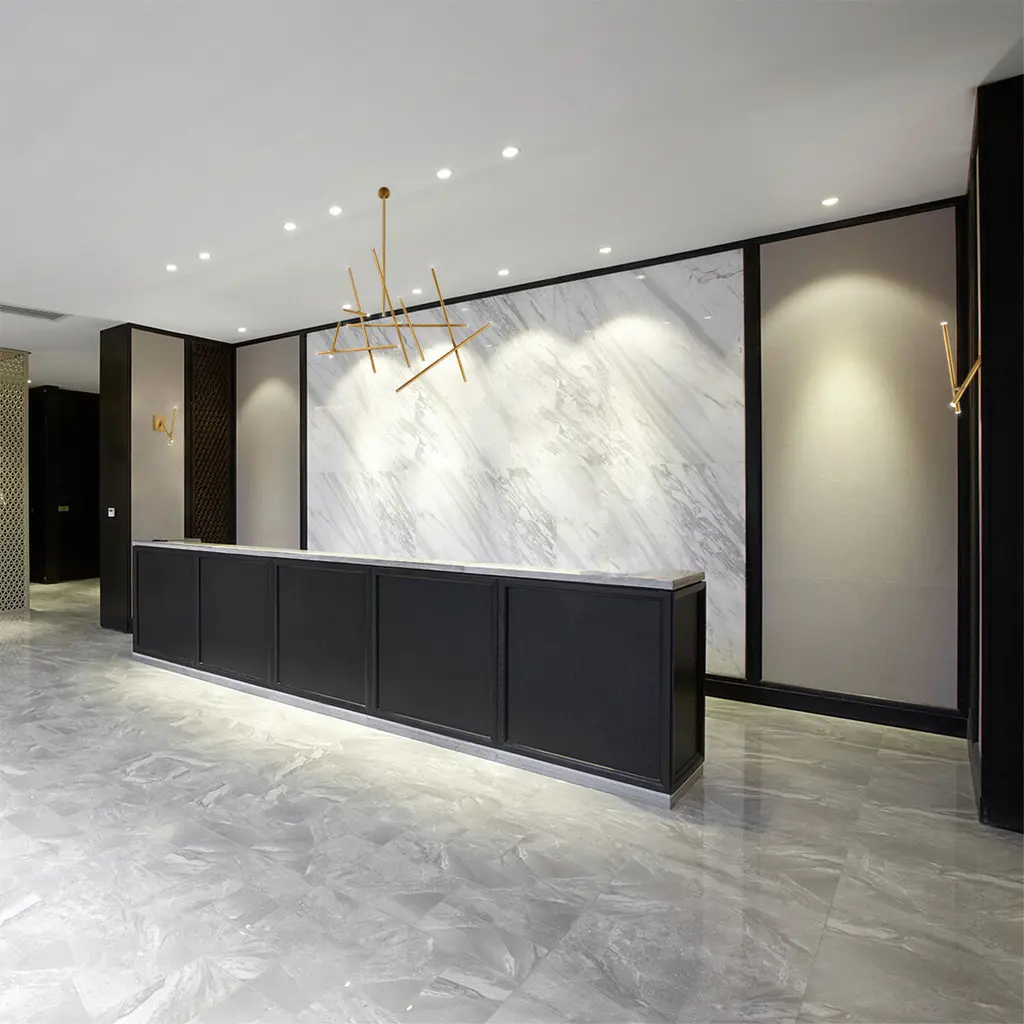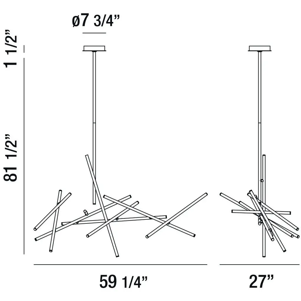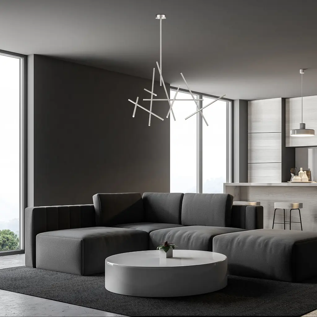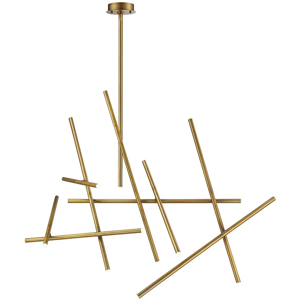 Minimalist rendition of intersecting paths, the simple rods of LED crisscross at varied points. The structure appears light and animated creating dynamic visual interest.
