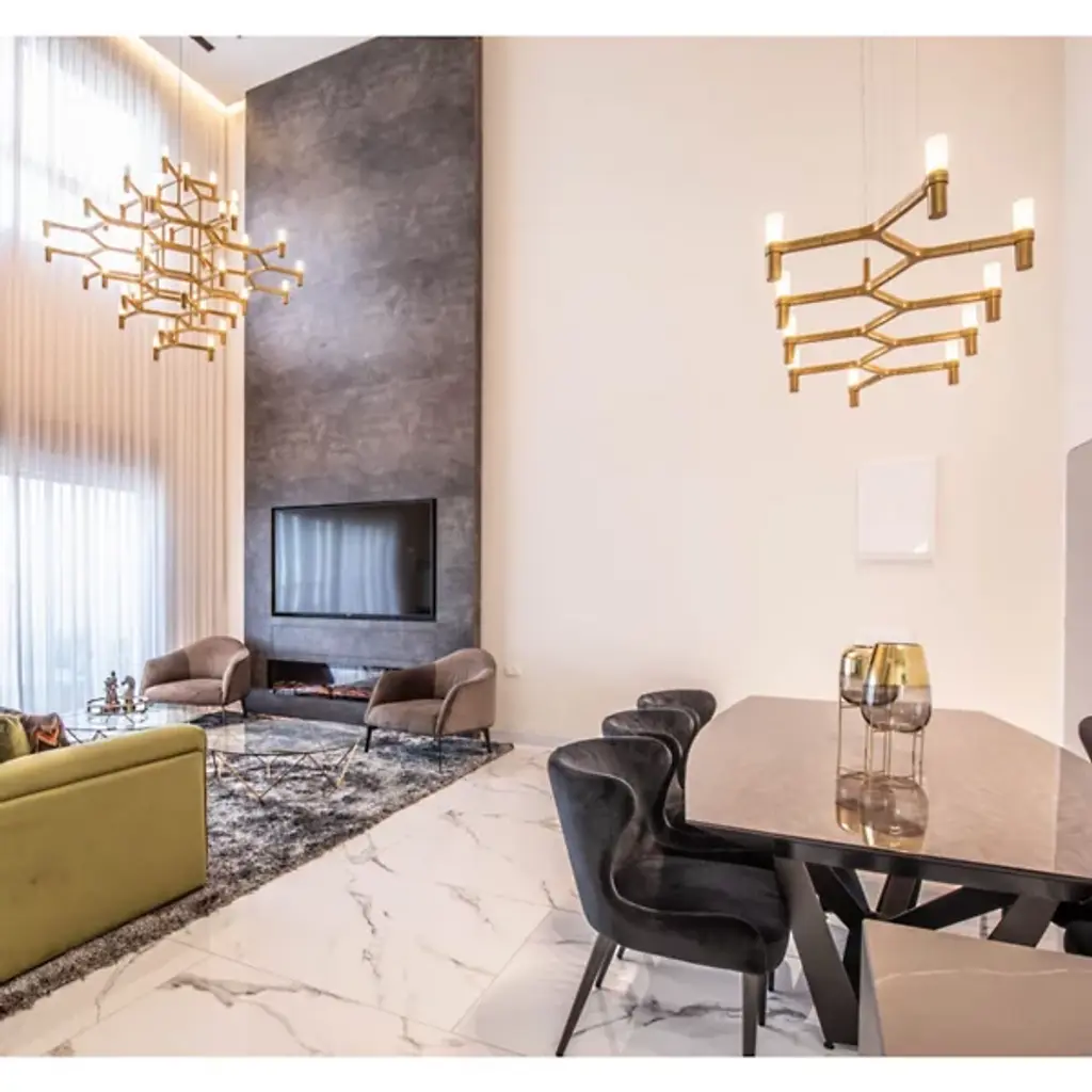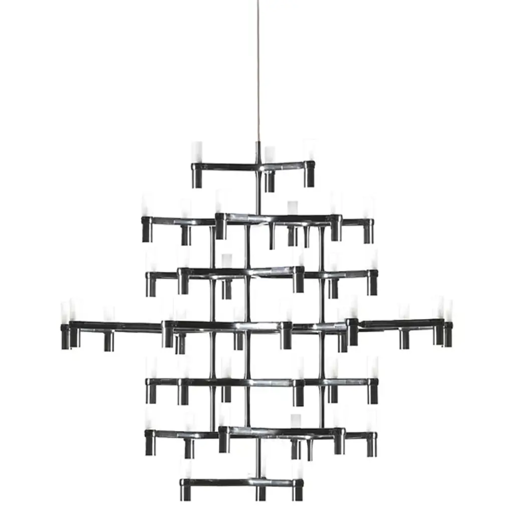 “How a design looks should not be far from what it does,” designer Jürgen Laub of Jehs+Laub says of his philosophy in creating a functional piece. That philosophy carries to the Crown Magnum Chandelier from Nemo, which is an iteration on the classic centerpiece chandelier inspired by the exquisite symmetry of a snowflake. Its die-cast aluminum structure is an array of stems attached to each other in a neat pattern. Cylindrical bases holding its LEDs are topped off by cylindrical glass diffusers which collectively produce a concert of vibrant ambient light. It brings rooms together with style and function.