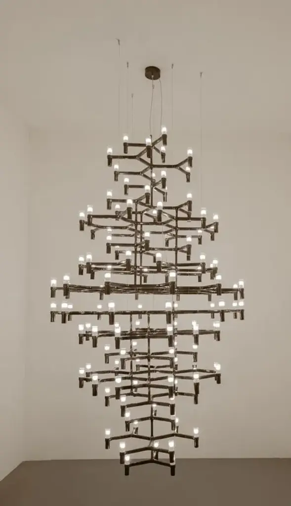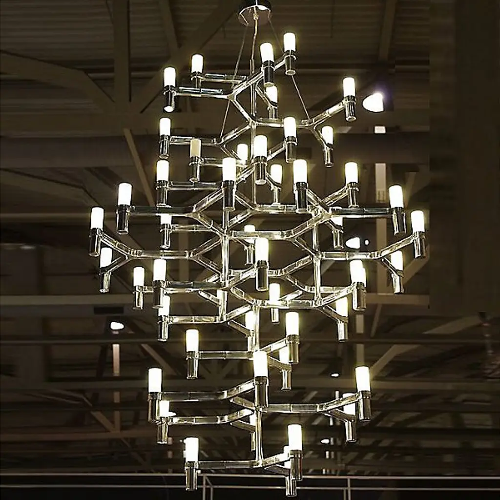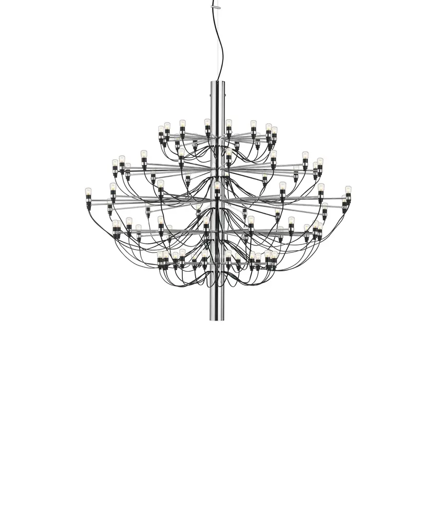 CROWN ROYAL is an aluminium chandelier. Structure is available in different versions hand polished aluminium, glossy gold plated or black plated, painted in matt white, matt black, or matt gold. Widespread light.Available a NEMO LED G9 kit.Source LED G9 QT-14Total power 120x2,2WEmission diffusedSwitching double, dimmable, according to bulbTension110/230VFamily composed by pendant chandeliers whose shape is inspired by the outline of the snow crystal. Modular lamps realized with a die-casted aluminium structure and sandblasted glass diffusers. Double switch for the Summa and Magnum versions. The pendant versions are equipped with transparent cable.Available a NEMO LED G9 kit