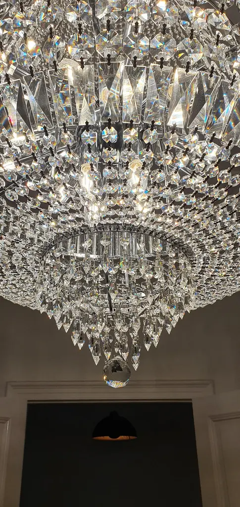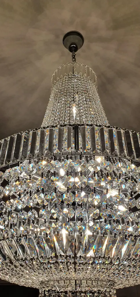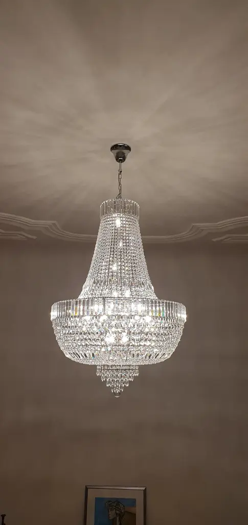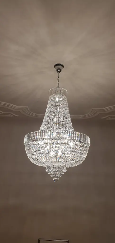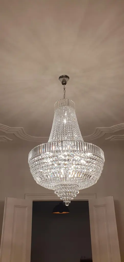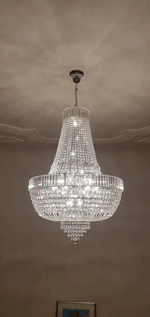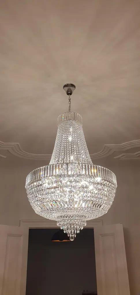 Introducing a captivating blend of Art Deco charm and Empire sophistication, our lead crystal chandelier is a testament to opulence and craftsmanship. Crafted in-house, we offer the flexibility of both smaller and larger sizes, ensuring the perfect fit for your space. Our team can even facilitate on-site installation, ensuring a seamless experience for you.Key Features:- Measures: Diameter 100 cm, Height 150 cm- Accommodates 34 x E14 bulbsThis chandelier is an embodiment of refined style, fusing the allure of Art Deco aesthetics with the grandeur of Empire design. Crafted from premium lead crystal, it radiates luxury and timeless beauty.Its measurements, with a diameter of 100 cm and a height of 150 cm, ensure a commanding presence that captures attention and admiration. With 34 E14 bulb sockets, it bathes your surroundings in a luminous glow, creating an ambiance that's both inviting and sophisticated.Whether for an intimate setting or a grand hall, this chandelier offers a touch of regal elegance that complements various spaces. Its exquisite construction and lead crystal elements evoke a sense of luxury and refinement.With a commitment to exceptional quality, we offer various sizing options to suit your needs. Our experienced team can even facilitate on-site installation, ensuring the chandelier becomes an integral part of your space seamlessly.Experience the allure of the Art Deco era with this crystal chandelier that exudes timeless beauty and sophistication. Its Empire sac a pearl design adds a touch of palatial charm to your surroundings, evoking the grandeur of a bygone era.Whether gracing a palace, chateau, or any space yearning for elegance, this chandelier is the epitome of style and luxury. Transform your environment into a realm of opulence with our Art Deco crystal chandelier – a beacon of refined taste and craftsmanship.