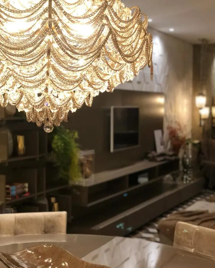 Crystal chandelier lamp 36 by AverDimensions: D 36 x H 52 cm Materials: Natural clear crystals, metal.Lighting: 4 x G9Available in other sizes.All our lamps can be wired according to each country. If sold to the USA it will be wired for the USA for instance.The history of Aver Metais as a lighting brand begins with Jefferson Aver manufacturing lamps in a completely handcrafted way and with very few resources in the family business. Over the years, the brand has grown and gained recognition. Today, our products are present in several projects by prestigious professionals, in addition to being resold in lighting boutiques in different regions of Brazil. Through its partners, Aver Metais has several participations in important design and architecture exhibitions. In 2015 the company started its internationalization process and today has clients and projects carried out in places like New York, Los Angeles, Chicago, Dallas, Miami, London, Cardiff, Hamburg, Manila, Santa Cruz de la Sierra, and Lima, attesting to the level quality and competitiveness of Aver Metais products.In our factory, each piece is meticulously produced using modern production processes combined with craftsmanship to detail. The result is original pieces that, more than illuminate, are jewels for your home. Over the years, the brand has been dedicated to creating and producing original and high-quality decorative lighting fixtures that can fit into the most varied and demanding interior architecture projects.