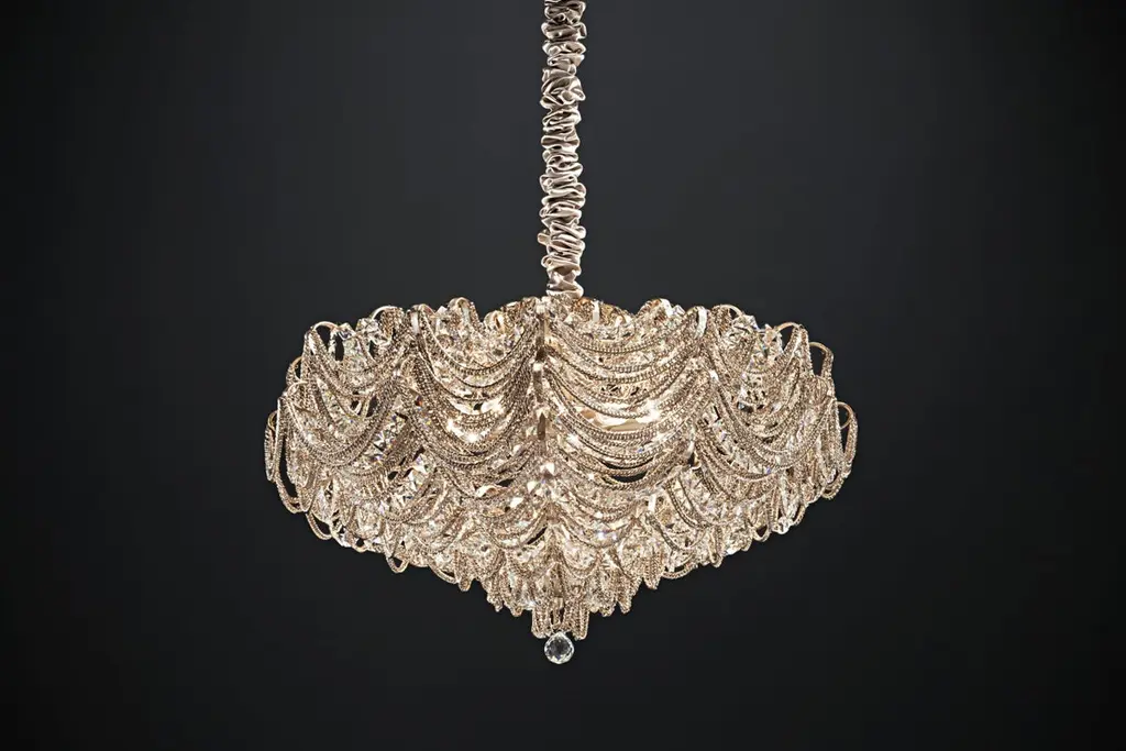 Crystal chandelier lamp 88 by AverDimensions: D 88 x H 55 cm Materials: Natural clear crystals, nickel.Lighting: 12 x E14Available in other sizes.All our lamps can be wired according to each country. If sold to the USA it will be wired for the USA for instance.The history of Aver Metais as a lighting brand begins with Jefferson Aver manufacturing lamps in a completely handcrafted way and with very few resources in the family business. Over the years, the brand has grown and gained recognition. Today, our products are present in several projects by prestigious professionals, in addition to being resold in lighting boutiques in different regions of Brazil. Through its partners, Aver Metais has several participations in important design and architecture exhibitions. In 2015 the company started its internationalization process and today has clients and projects carried out in places like New York, Los Angeles, Chicago, Dallas, Miami, London, Cardiff, Hamburg, Manila, Santa Cruz de la Sierra, and Lima, attesting to the level quality and competitiveness of Aver Metais products.In our factory, each piece is meticulously produced using modern production processes combined with craftsmanship to detail. The result is original pieces that, more than illuminate, are jewels for your home. Over the years, the brand has been dedicated to creating and producing original and high-quality decorative lighting fixtures that can fit into the most varied and demanding interior architecture projects.