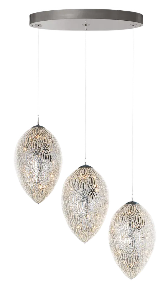 Inspired by a stunning antique French chandelier from the 1930s, ours echoes the ingenuity of those designs. Over 44,000 faceted, hand-wrapped crystal glass beads wrap the steel frame to form a floating orb, suspended via a steel cable. The beadwork, reflecting and refracting the interior light, casts a warm glow. SHOP THE ENTIRE COLLECTION