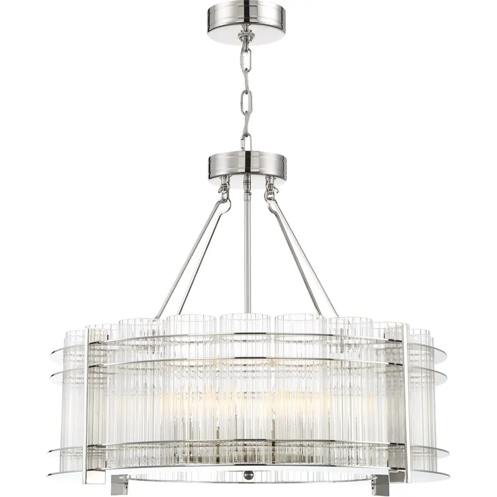 The Elliot collection, designed by Libby Langdon, is a sleek and almost masculine collection featuring a series of chunky Lucite rods and a polished nickel frame to highlight the shape. The fixture's view from below is as important as what it looks like from the side. The metal work follows the shape of the circular rods creating a scallop pattern. The filtered light bounces between the Lucite rods and gives off a beautiful glow. Architectural in nature, the Elliot is a modern take on a crystal-style wall mount. Elliot collection features a versatile transitional design. / A balanced blend of traditional and contemporary elements, featuring clean lines, neutral finishes, and subtle detailing, offering versatile designs that complement a variety of interiors. / Due to the substantial weight of this item, please consult with a local electrician to make sure your outlet box can support the item. / Polished Nickel metal finish, perfect for modern & contemporary settings. / 22.5"W x 18"H x