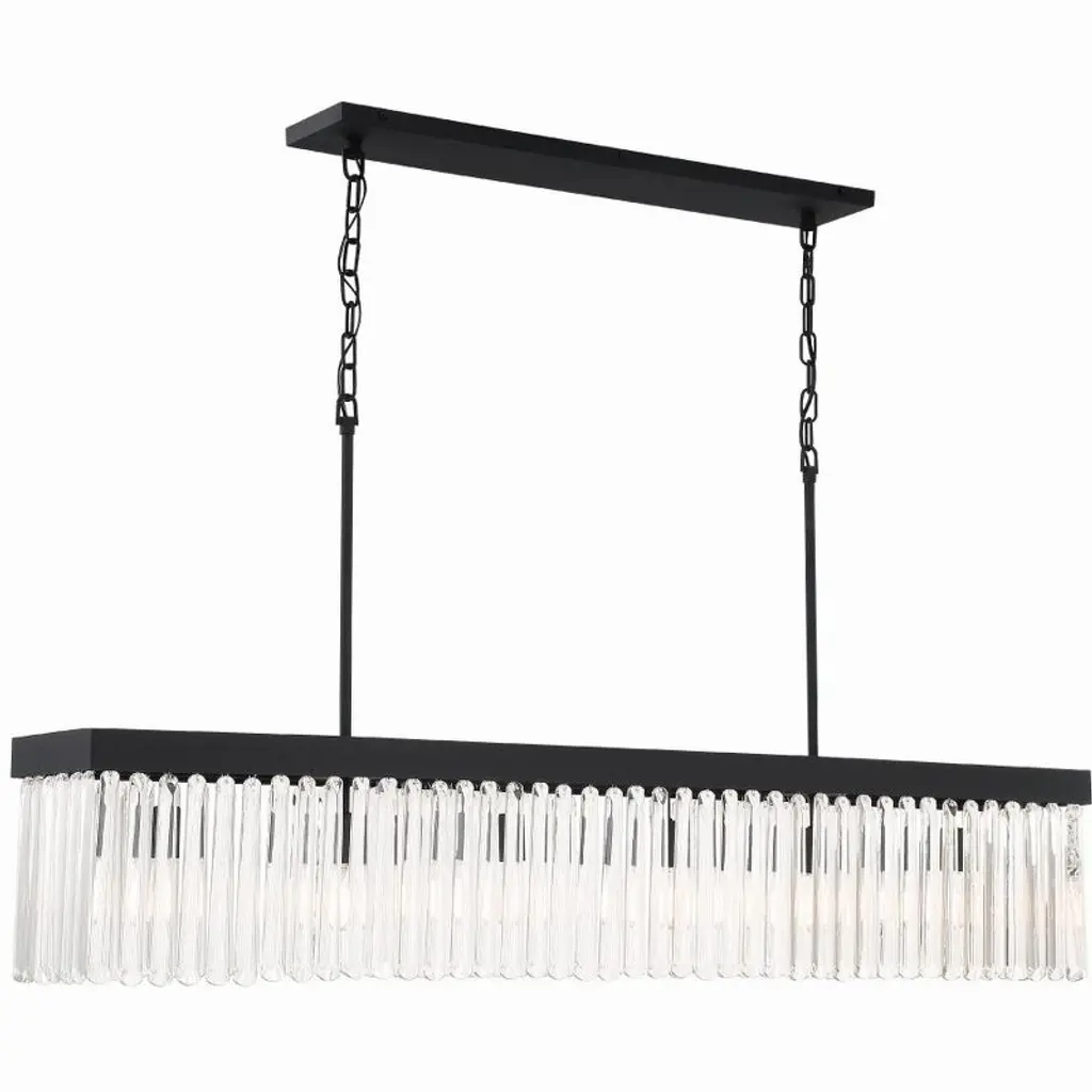 Material: Steel, Finish Color: Black Forged, Width: 49", Height: 23.75", Depth: 7.25", Chain Length: 72", Lamping Type: Incandescent, Number Of Bulbs: 6, Wattage: 60 Watts, Dimmable: Yes, Moisture Rating: Damp Rated