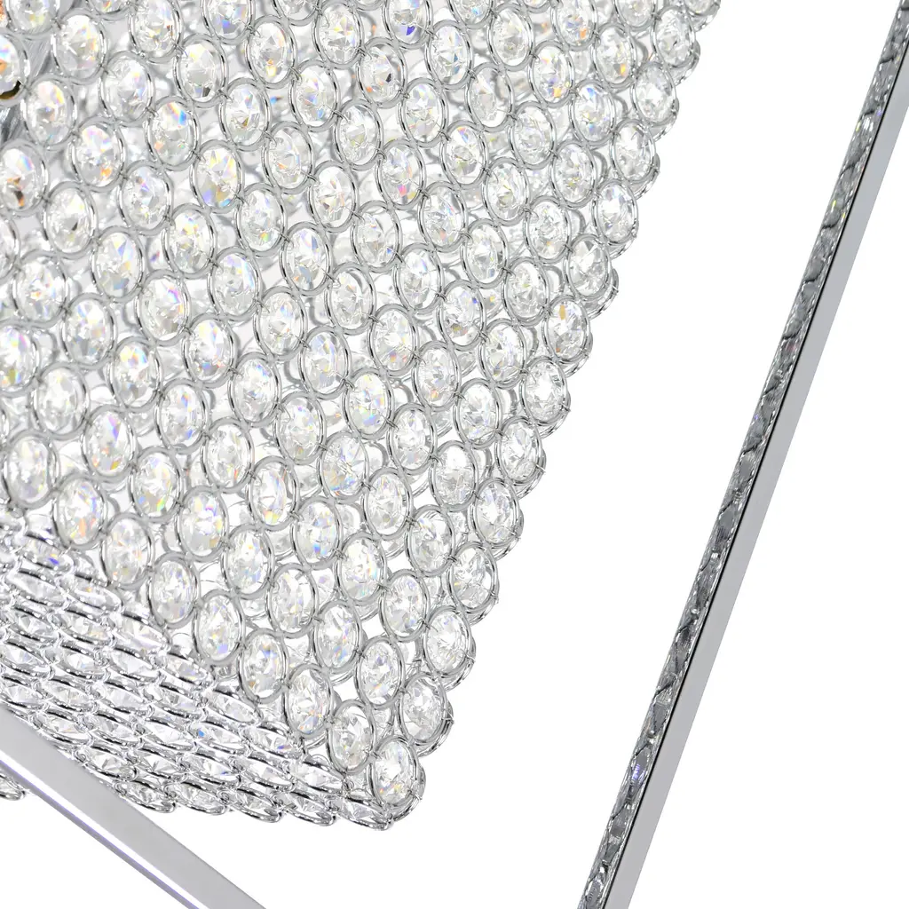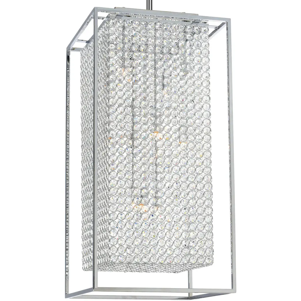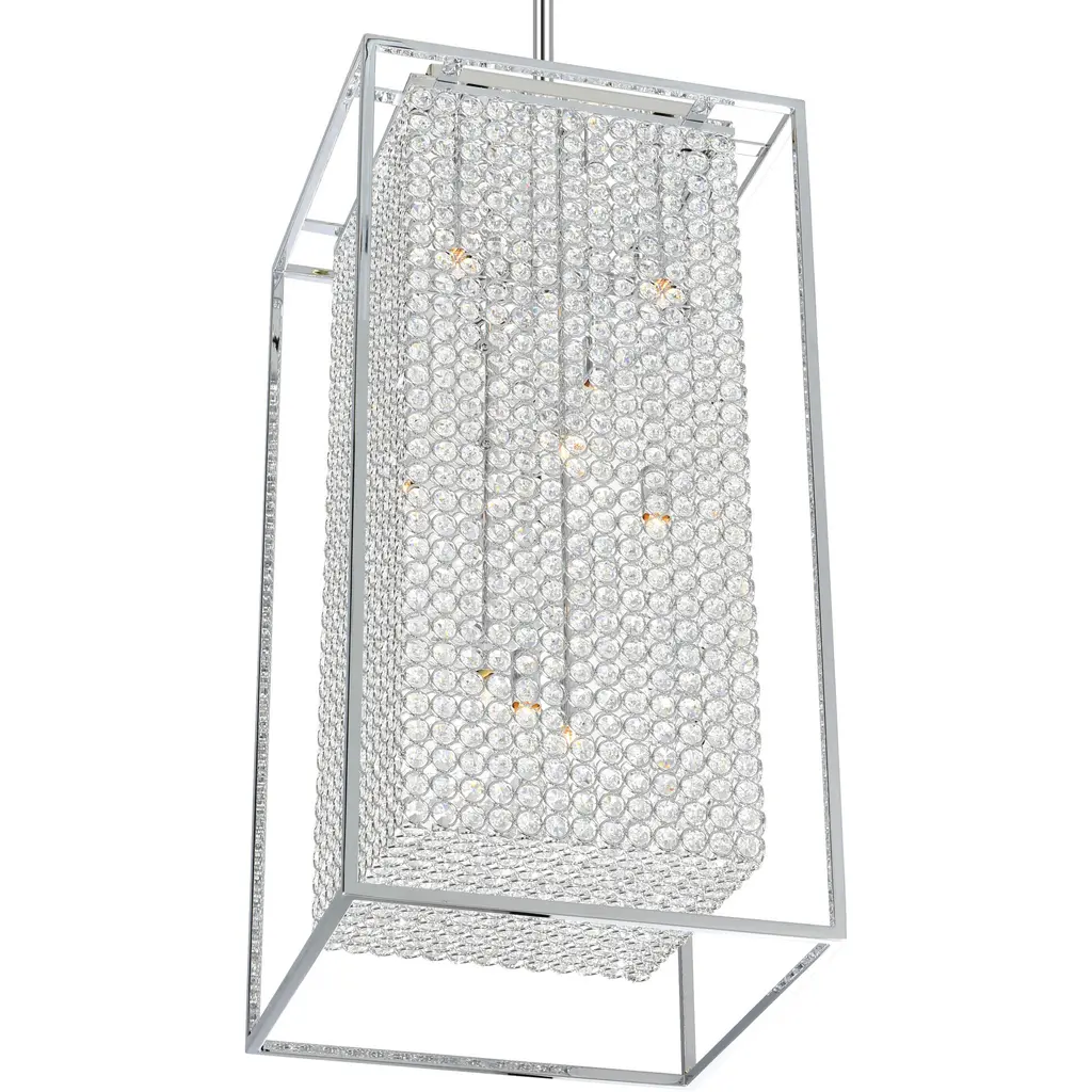 The Cube 11 Light Chandelier delights like a box of glitter. This rectangular cube of crystals radiates a shimmering glow and a striking appeal that will take your interiors' style to the next level. Furnish your dining room, kitchen, or entryway with luxury through this glam light fixture.