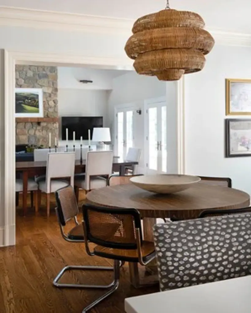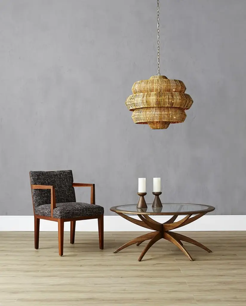 Painstakingly woven by artisans who use traditional techniques, the Antibes Chandelier is a marriage of artistry and high-quality construction. Natural rattan forms the body of this geometric chandelier supported by a wrought iron frame in a khaki finish. This rattan chandelier is one of several fixtures in the Antibes family.