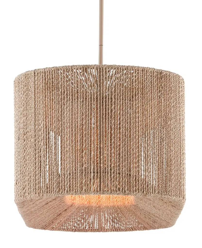 The Mereworth Chandelier has an oblong wrought iron frame around which natural abaca rope has been painstakingly wrapped to create its shade. The rope chandelier emits a warm glow thanks to the color of the abaca. The material also lends the chandelier a nautical feel that makes it perfect for seaside retreats and ocea