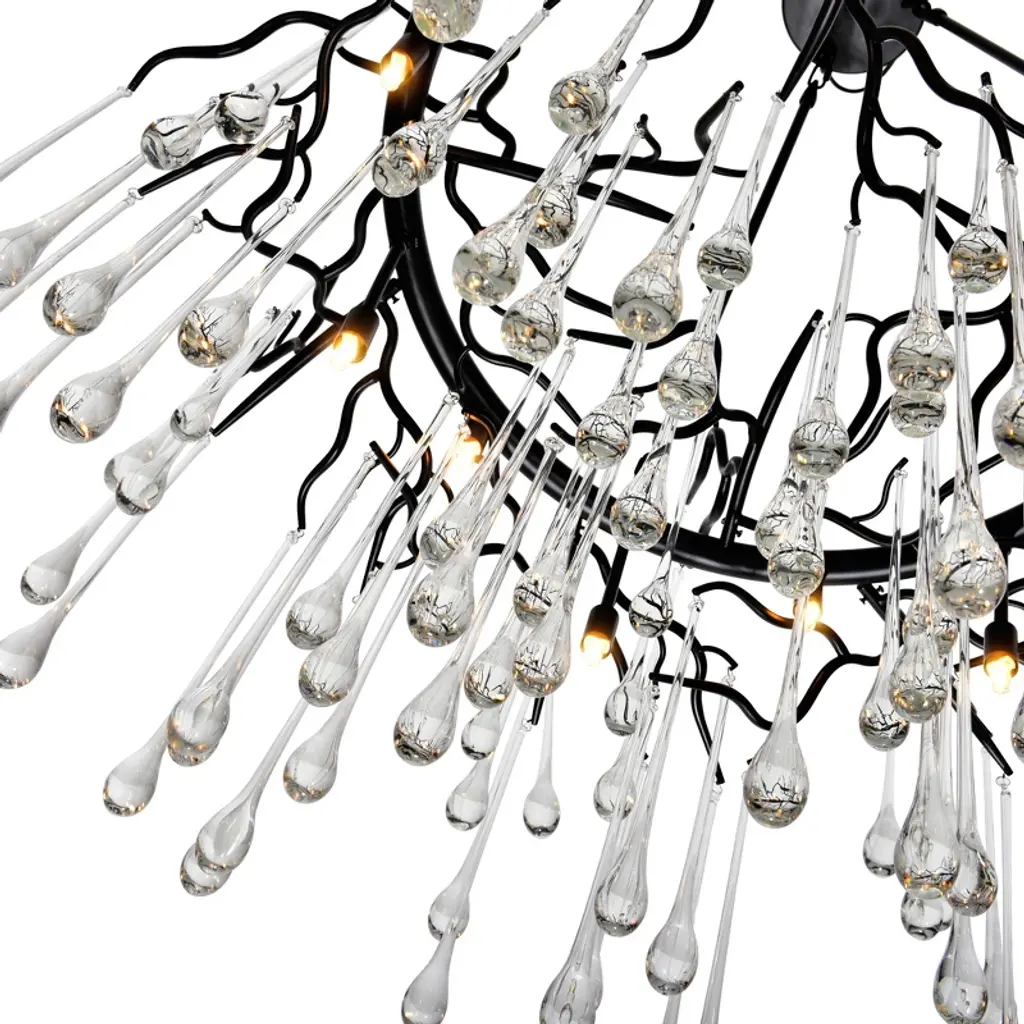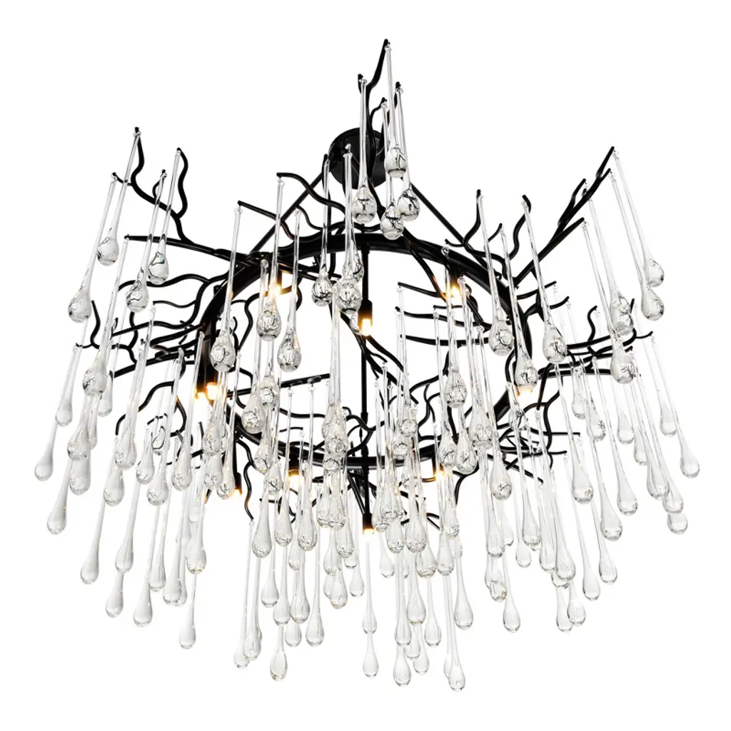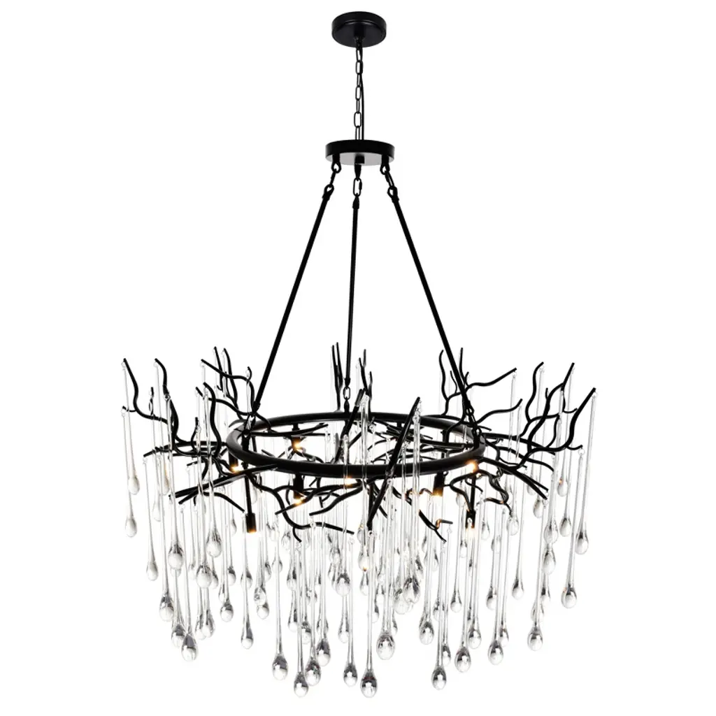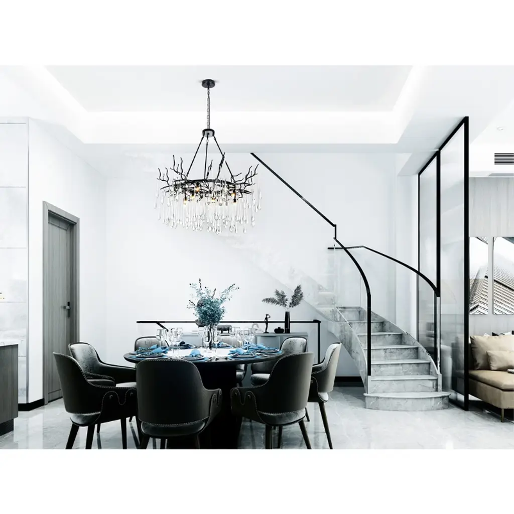 Your velvet modern chairs and this oversized Anita 12 Light Chandelier will create an ambiance that's indulgent and beautiful. This breathtaking down chandelier features clear teardrop crystals dramatically dripping from a black tree branch sculpture. Add this transitional down chandelier to your dining room or living room for a luxurious look