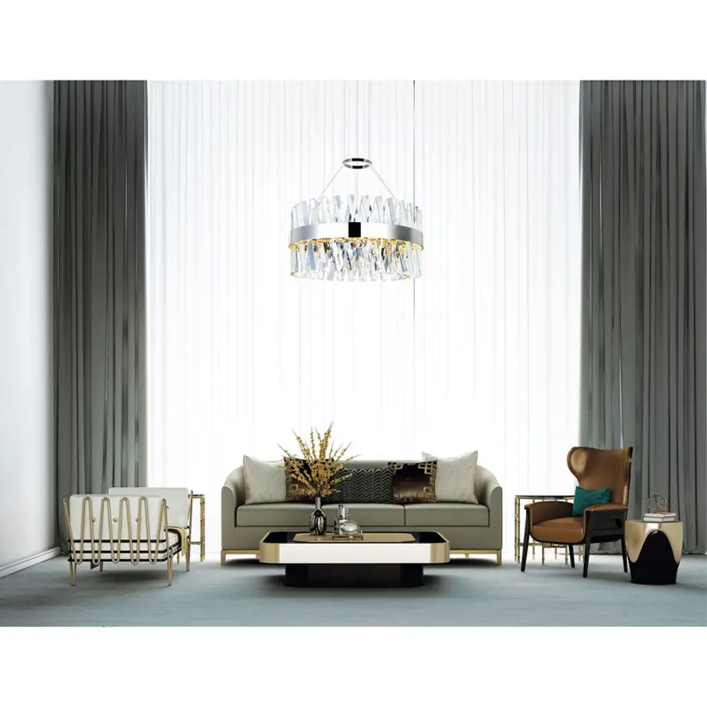 Move beyond traditional lighting and install something that's mood-lifting, style-upgrading, and ambiance-transforming. Have the Glace 24 inch LED Chandelier in Chrome installed in your living room, dining room, or bedroom. This circular up chandelier features crisscrossing angular clear crystal rods with integrated LED. Let the sparkling beauty of this light fixture radiate a luxurious vibe to your space