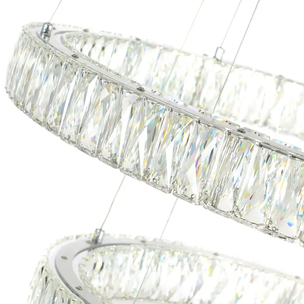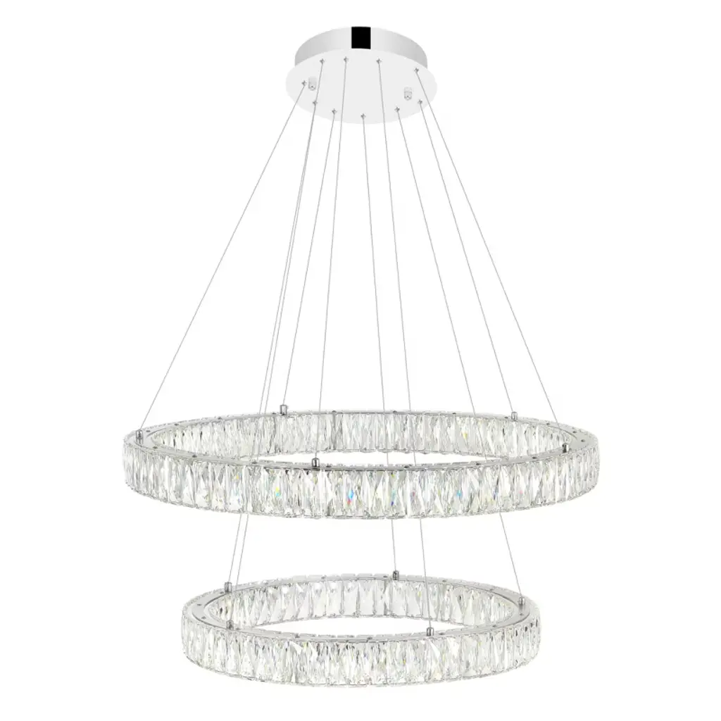 Instantly create a classy atmosphere in your living room with the Madeline 2 Ring LED Chandelier. Two concentric halos of light hang from adjustable cords connected to a round chrome canopy. This down chandelier embodies the high life and is completely capable of jazzing up a high-ceiling, open concept floor plan