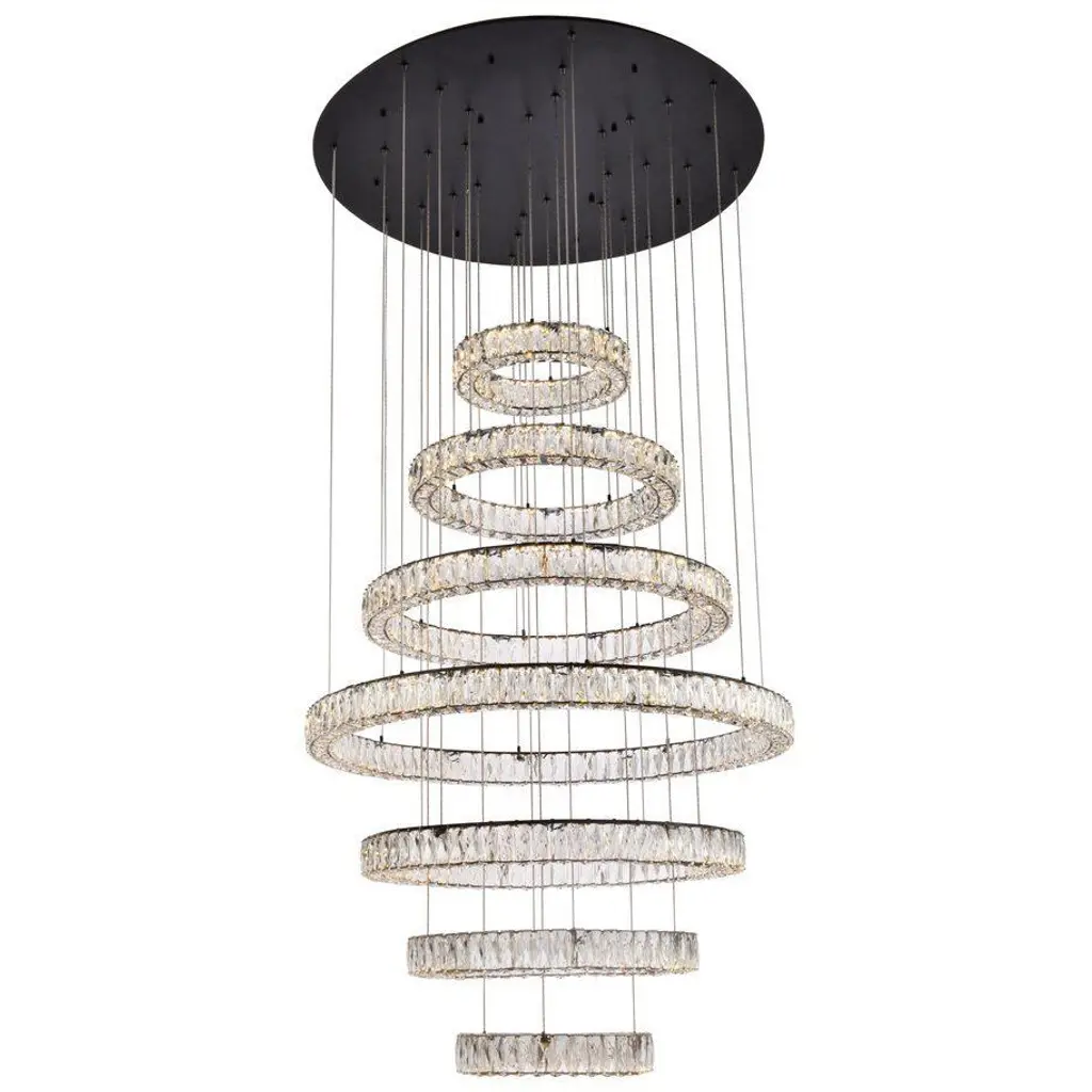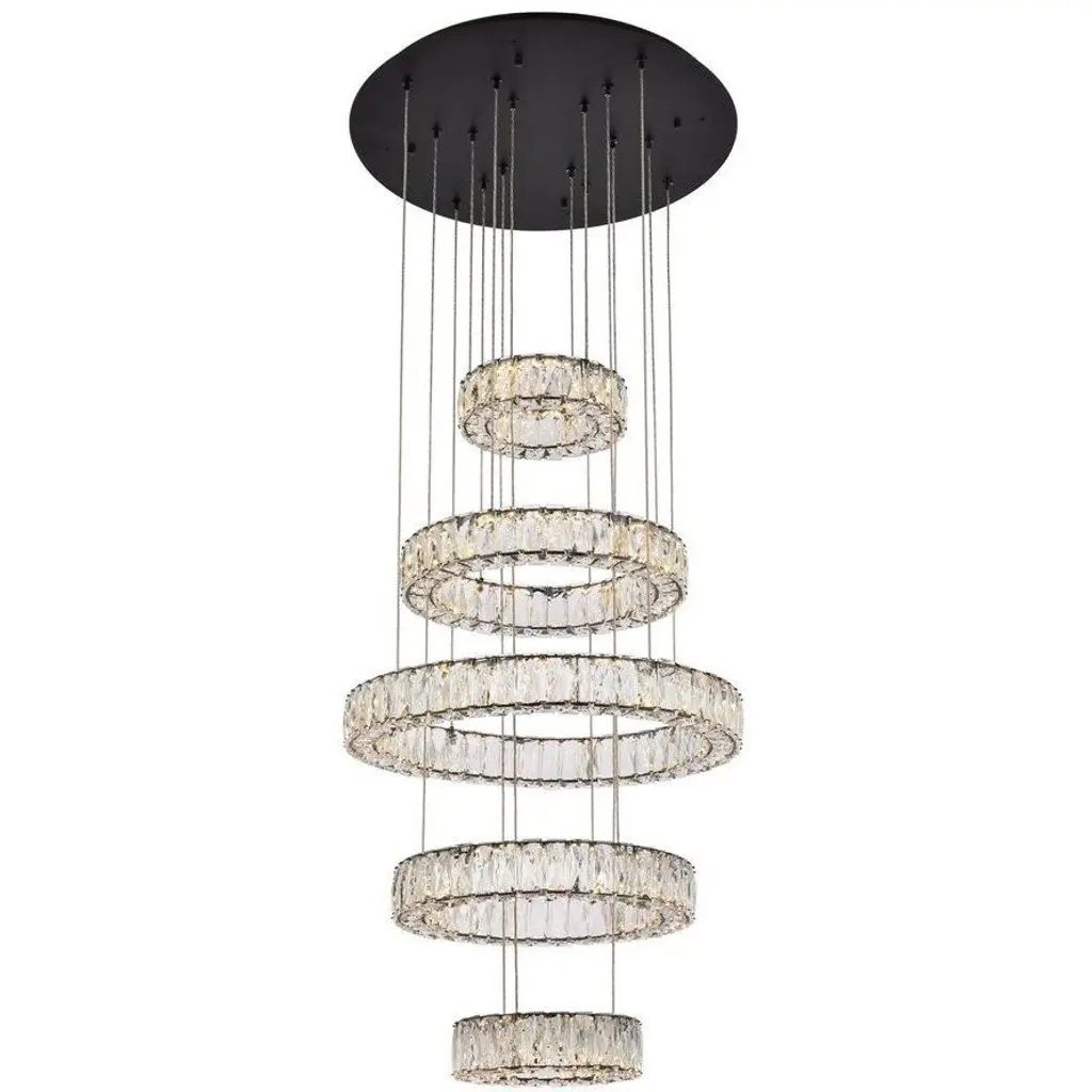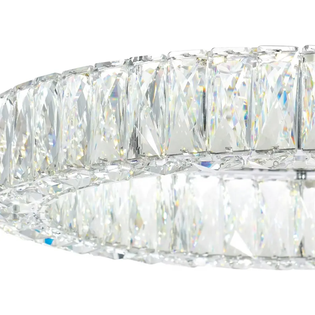 Delivering an astonishing effect day and night, the Madeline 5 Ring LED Chandelier won't disappoint. Regardless of where you hang it and whether it's lit or not, this breathtaking down chandelier will impress. The sparkling crystal beads and the sleek chrome finish work perfectly together to keep this light fixture impact graceful, refined, and distinctively exquisite