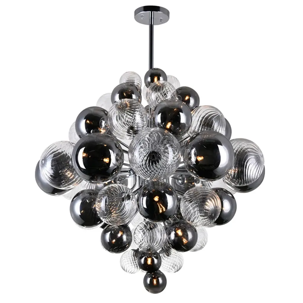 Your high ceiling and open floor plan is destined to feature this statement-making light fixture. The Pallocino 27 Light Chandelier in Chrome Finish is designed with an interesting cluster of clear and smoke-colored glass balls. Measuring 36 inches in diameter, this oversized assembly of glowing glass balls will surely add a refined touch to your living space