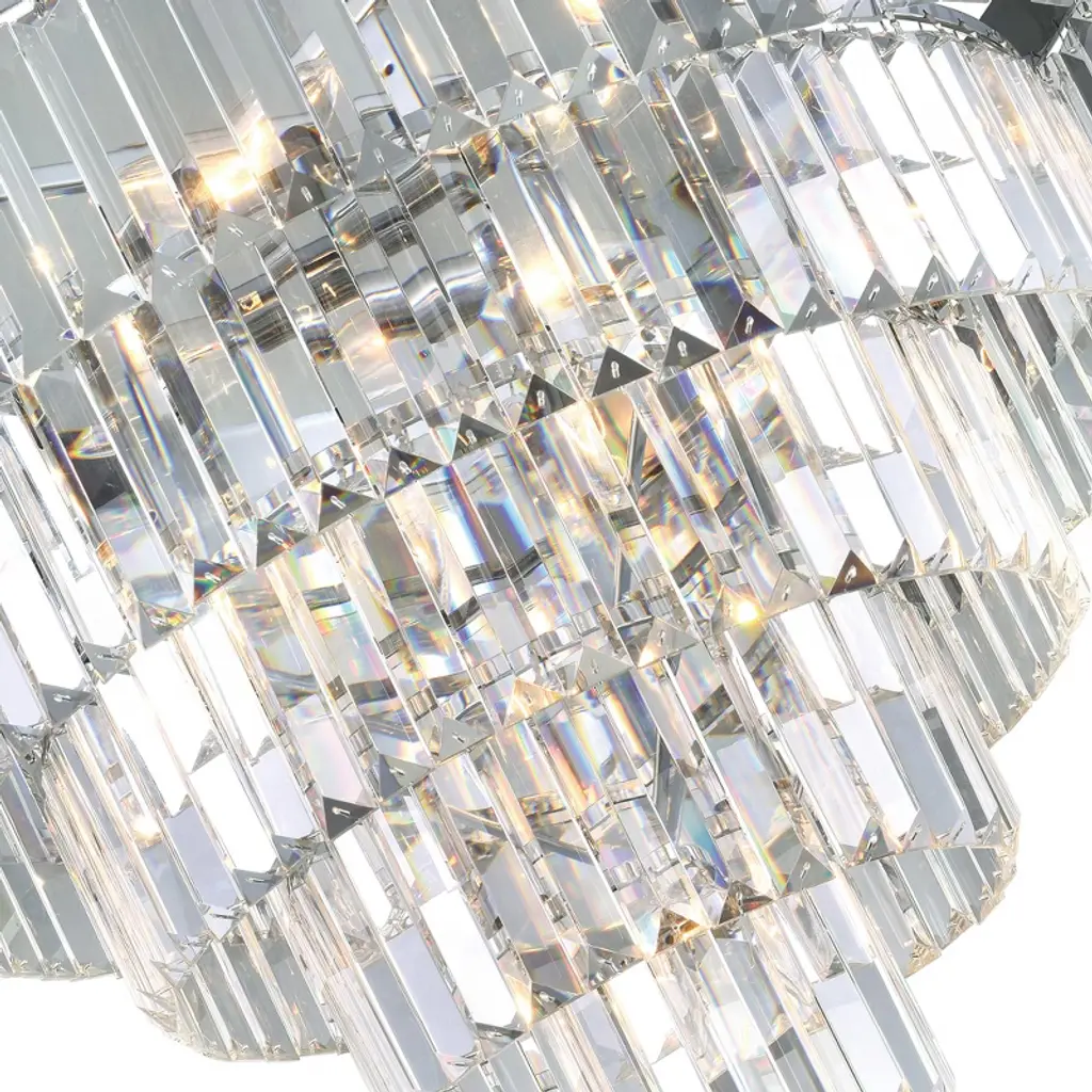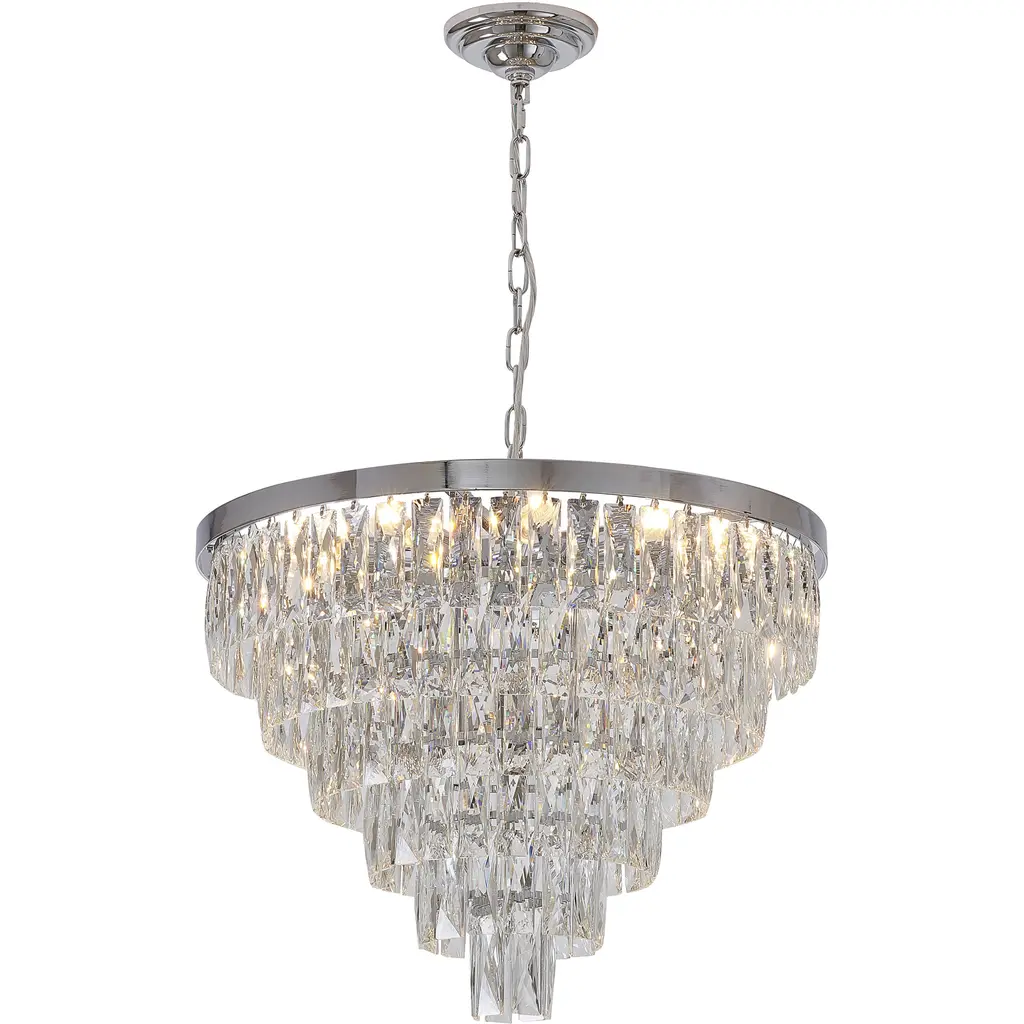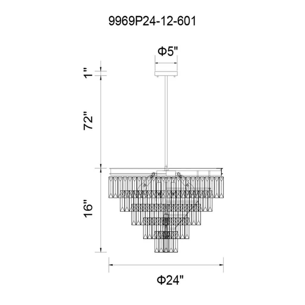 Instantly add opulence to your living room with the Weiss 12 Light Chandelier. This down light features a 24 inch tiered pendant with five layers of dangling faceted crystals. It has a chrome-finished metal frame that rounds out the opulent shine and the polished look of this piece. Candelabra bulbs that you can set with a dimmer make this light glow