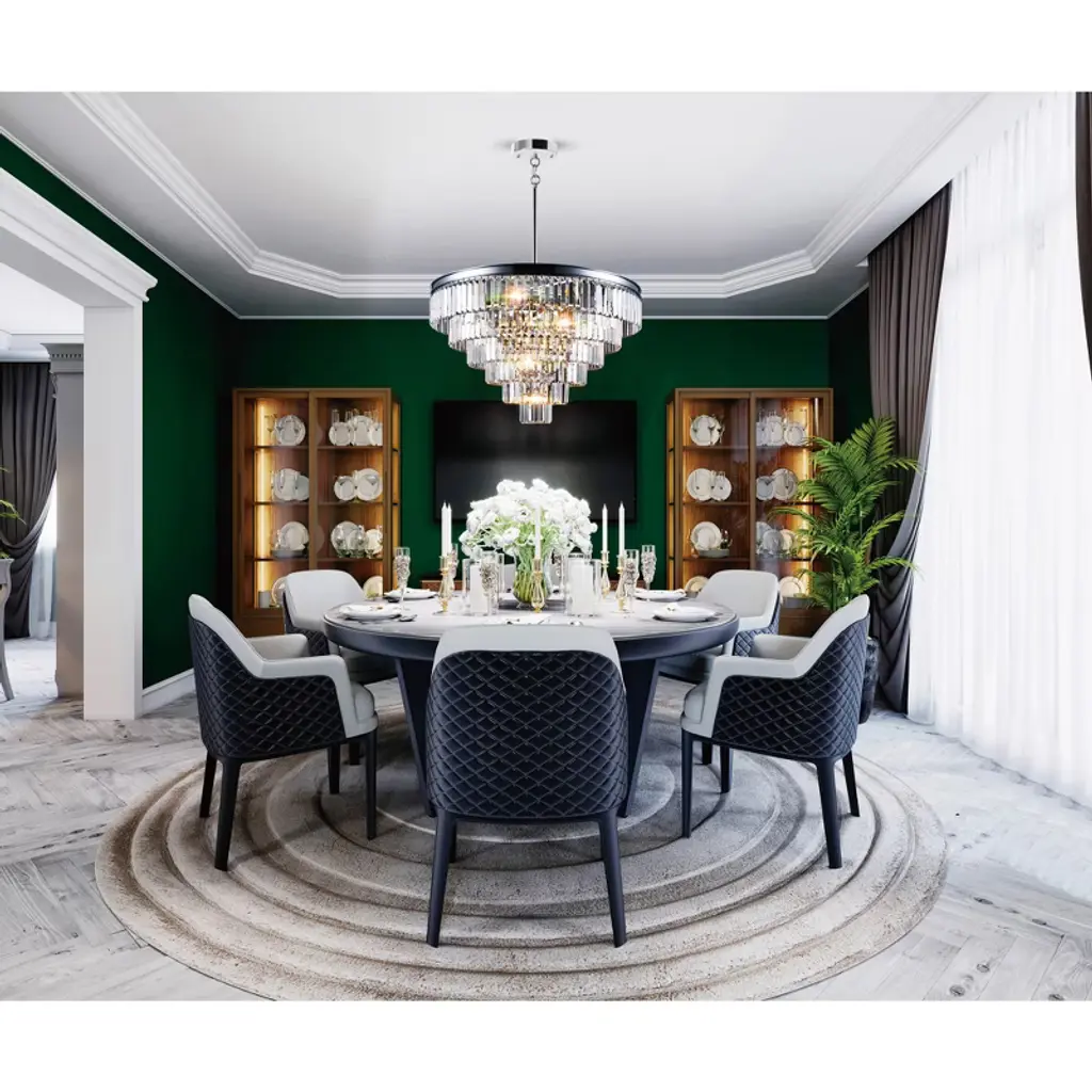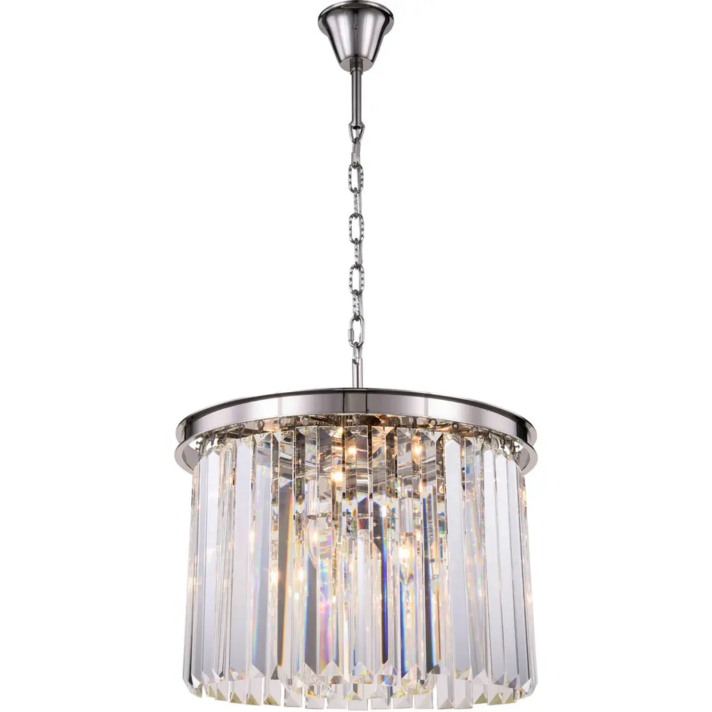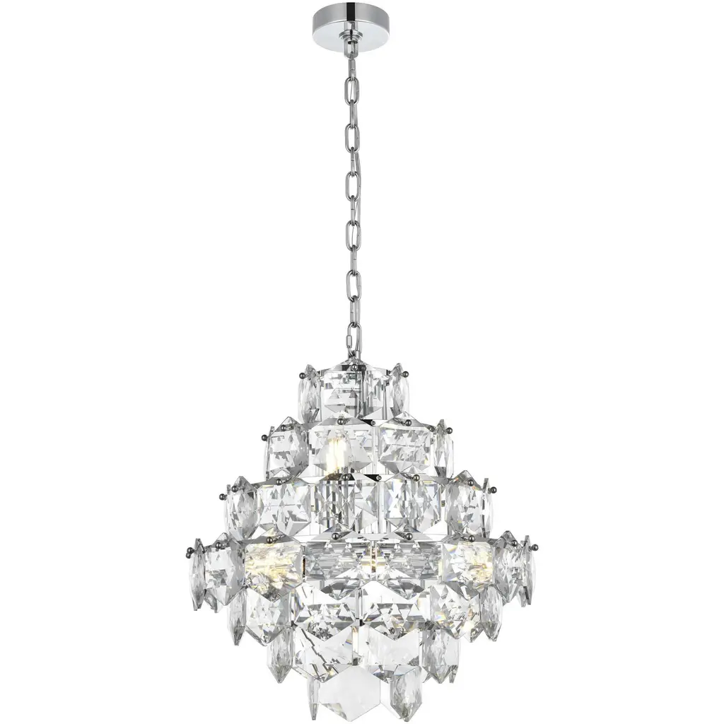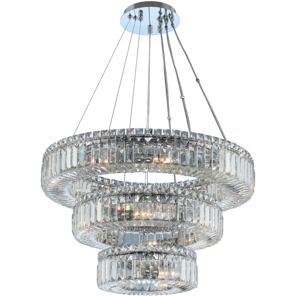 The Weiss 15 Light Chandelier in Chrome features exquisite crystal tiers creating a stunning traditional design that exudes a modern flair. This large 30 inch down chandelier has that glam factor that will make your space look upscale in an instant. Make your interiors look brighter and feel a lot bigger with the presence of this ultra-gorgeous chandelier.