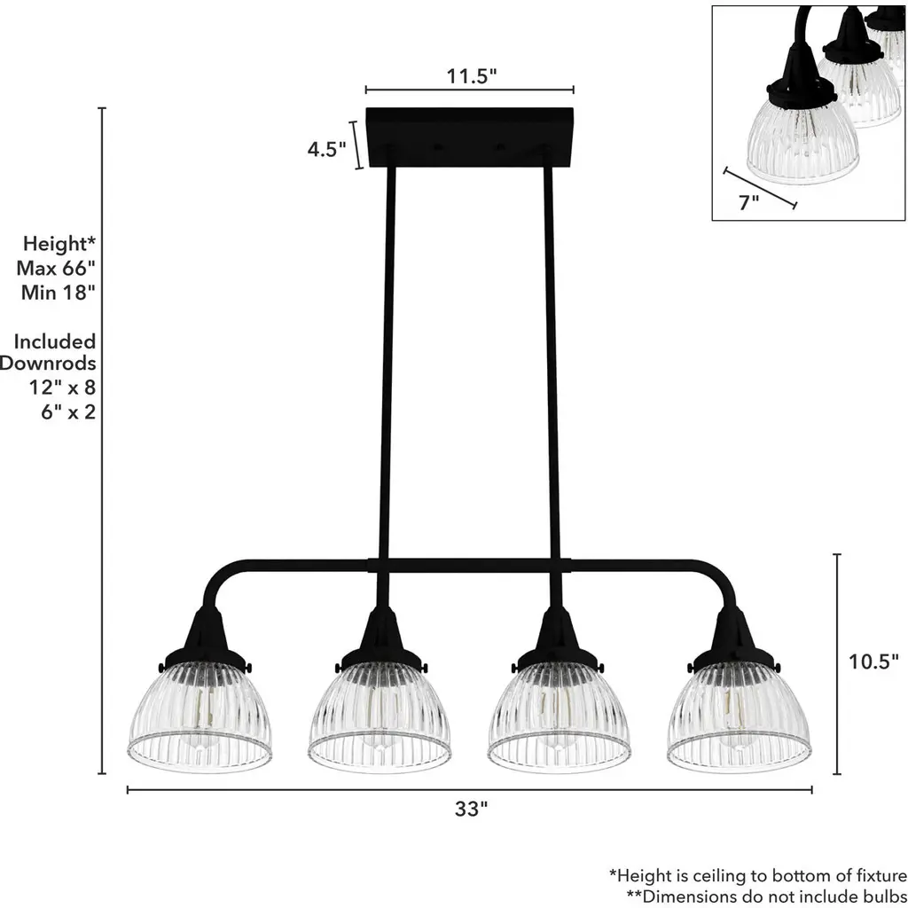 From top to bottom, this modern light fixture is packed with detail. The Cypress Grove 4 light linear chandelier is an exceptional combination of modern influences and industrial staples. The strong lines and fluted glass blend for a look that brings your space to life. Pair this linear chandelier with other fixtures from the Cypress Grove collection for a dramatic effect.