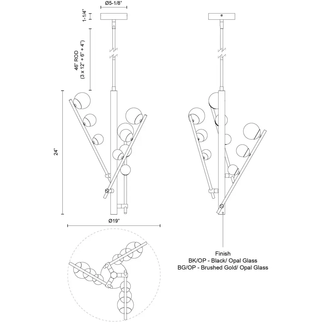 Cypress 3 Head Black/Opal Glass LED Chandelier
