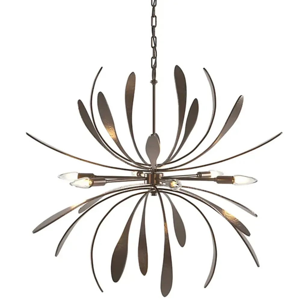 The Dahlia Outdoor Chandelier from Hubbardton Forge brings a touch of elegance to any covered outdoor space. Designed with an irregular light fixture shape, this chandelier offers a unique blend of traditional and transitional style. Whether showcasing its charm over an outdoor living area or enhancing the ambiance of a covered patio, its craftsmanship exemplifies high-quality artistry. Perfect for outdoor gatherings, the Dahlia Outdoor Chandelier truly elevates the atmosphere by bringing light and character into your space.