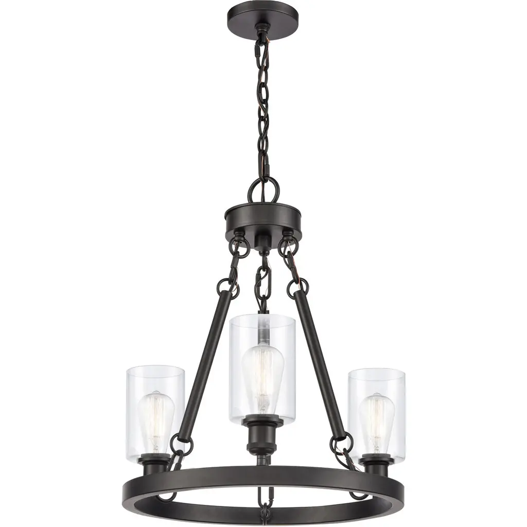 The Dakota collection rounds up the best in Western style with a rustic chic design. Cast metal faux leather straps and buckle combine with clear seedy hurricane shades perched on cast cups for luxe lodge charm.