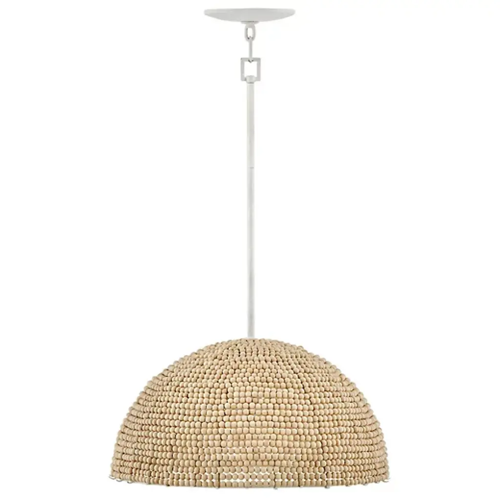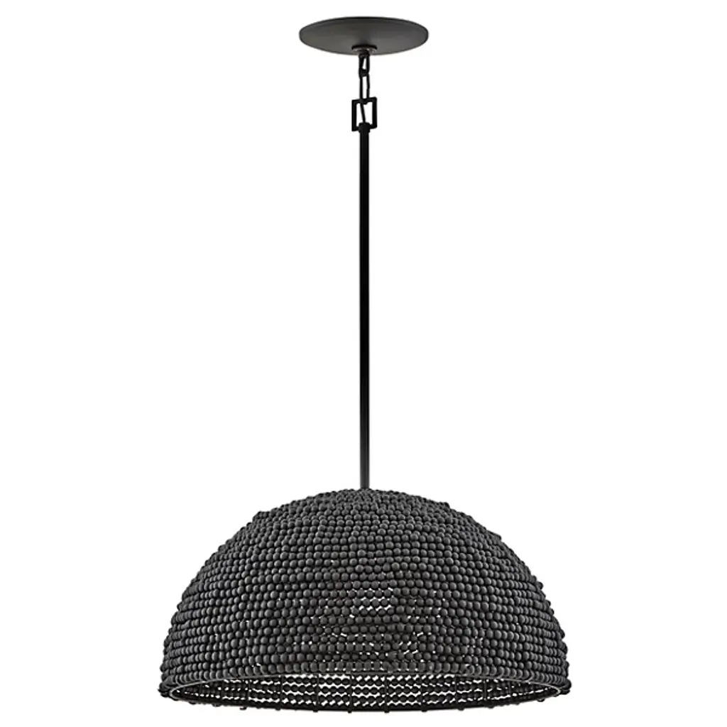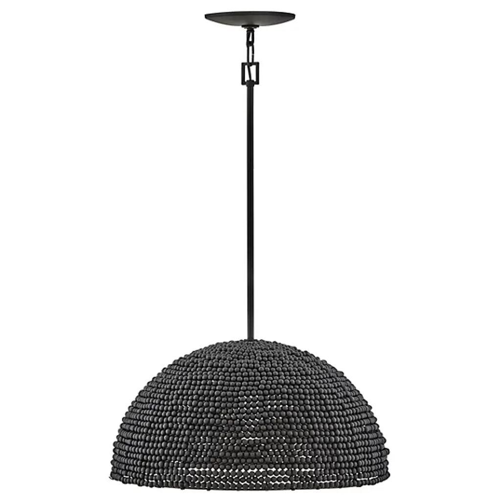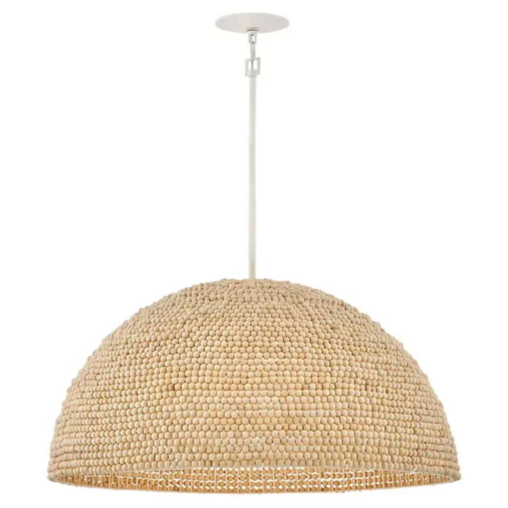 The Dalia Chandelier from Hinkley is an intriguing luminaire that bathes your space in a warm, ambient glow. Crafted from durable steel, this pendant features a shade of wooden beads meticulously arranged to form a dome shape. Emitting LED light from above, Dalia creates a cozy and inviting atmosphere. When used with a separately sold ELV dimmer, your pendant boasts dimmable capabilities, allowing you to tailor the lighting to suit your occasion. Additionally, it is sloped-ceiling adaptable for versatility.