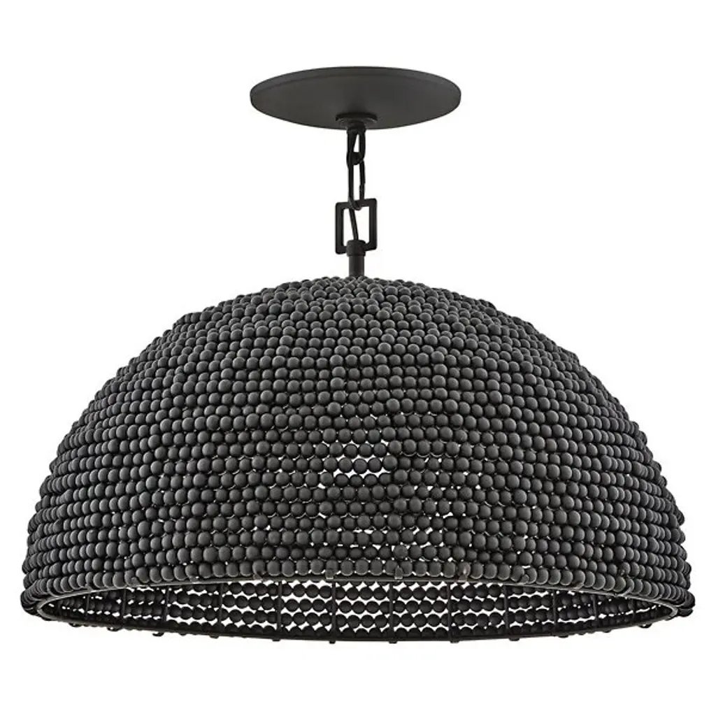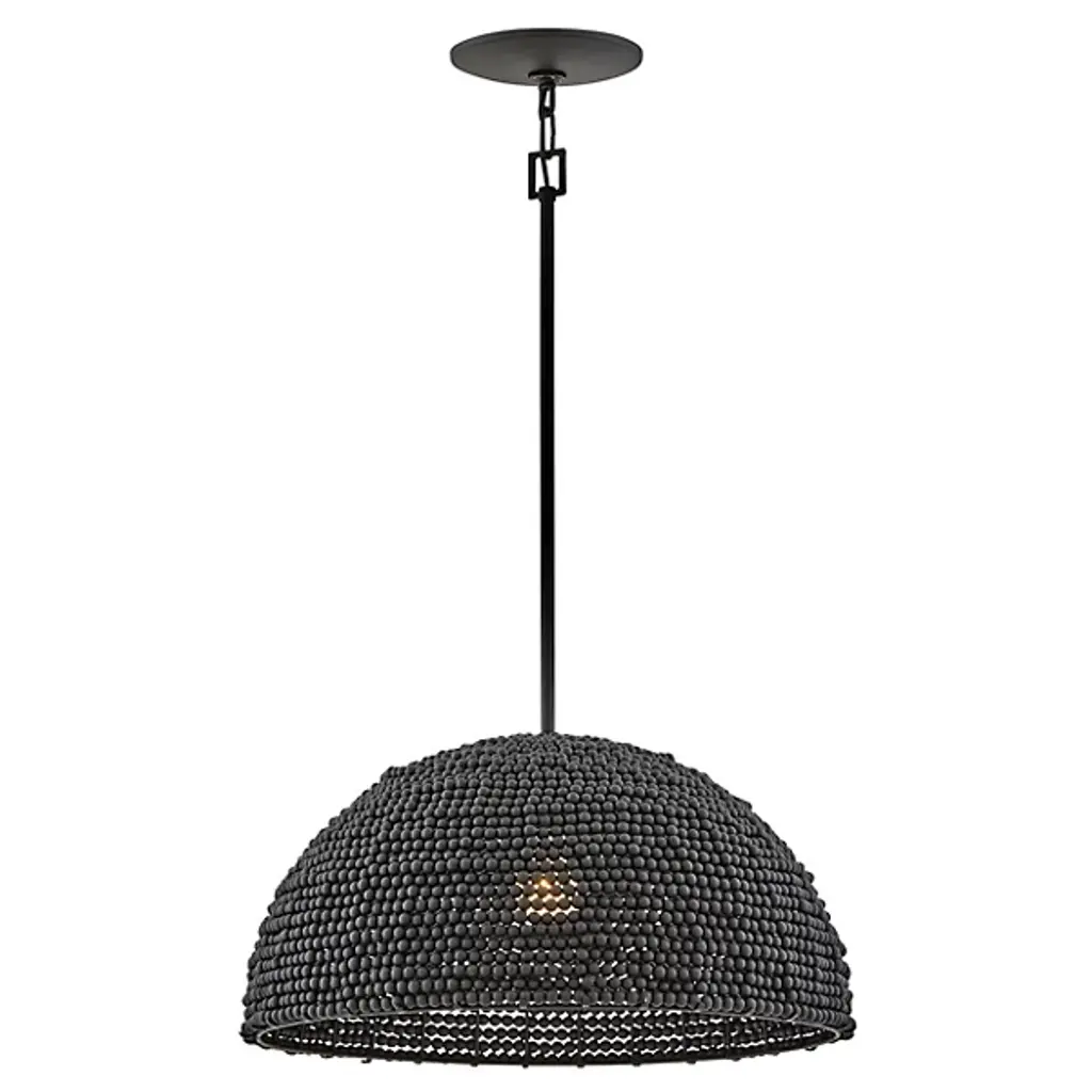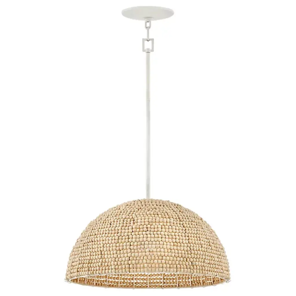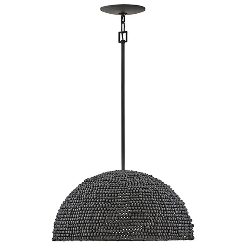 The Dalia Chandelier from Hinkley is an intriguing luminaire that bathes your space in a warm, ambient glow. Crafted from durable steel, this pendant features a shade of wooden beads meticulously arranged to form a dome shape. Emitting LED light from above, Dalia creates a cozy and inviting atmosphere. When used with a separately sold ELV dimmer, your pendant boasts dimmable capabilities, allowing you to tailor the lighting to suit your occasion. Additionally, it is sloped-ceiling adaptable for versatility.