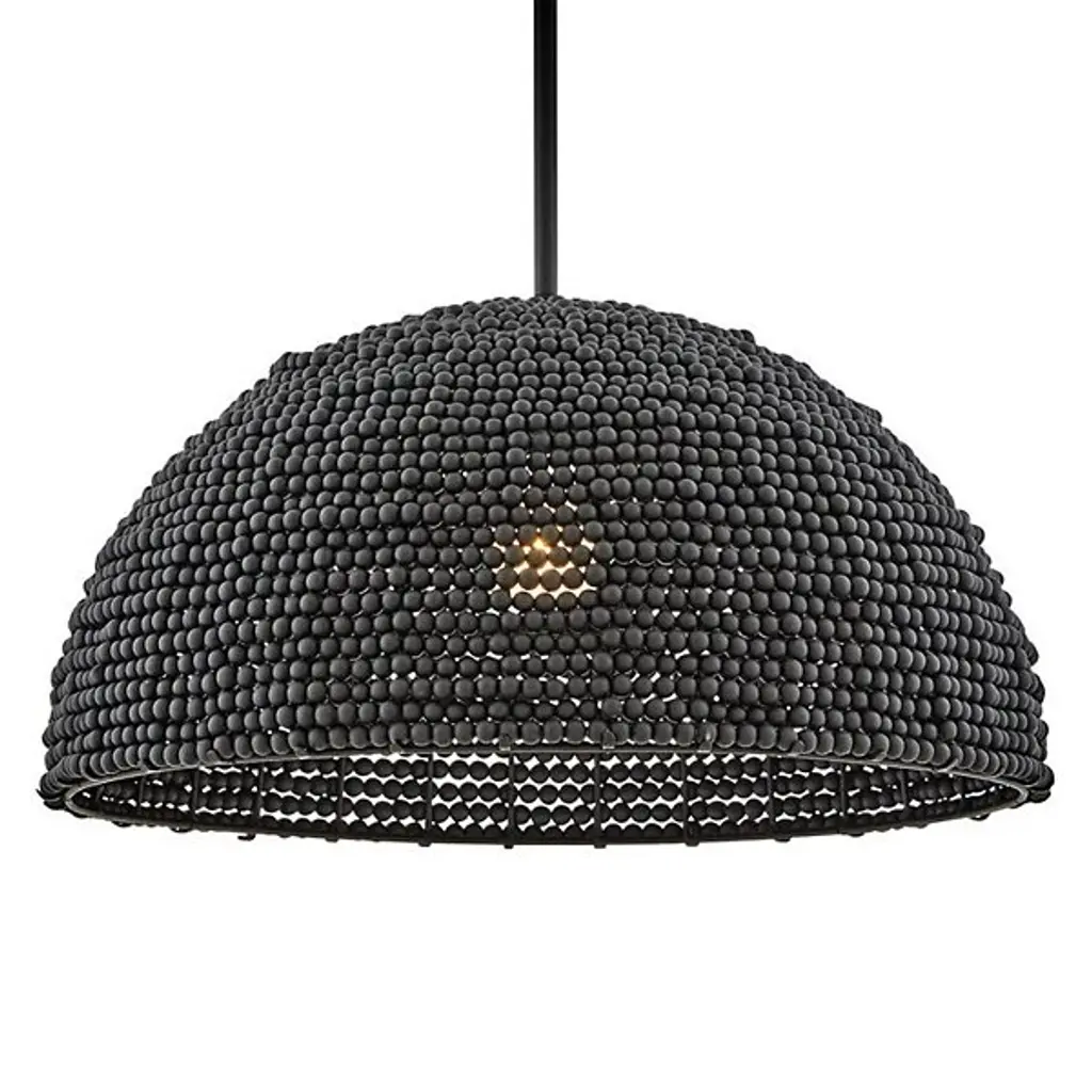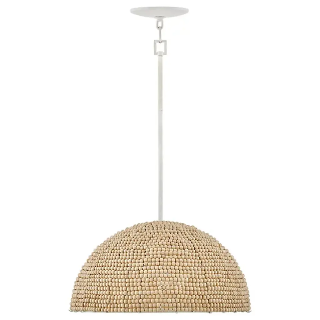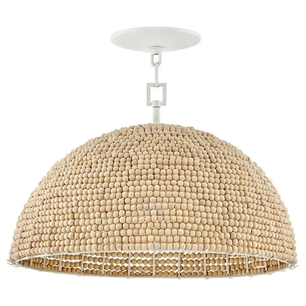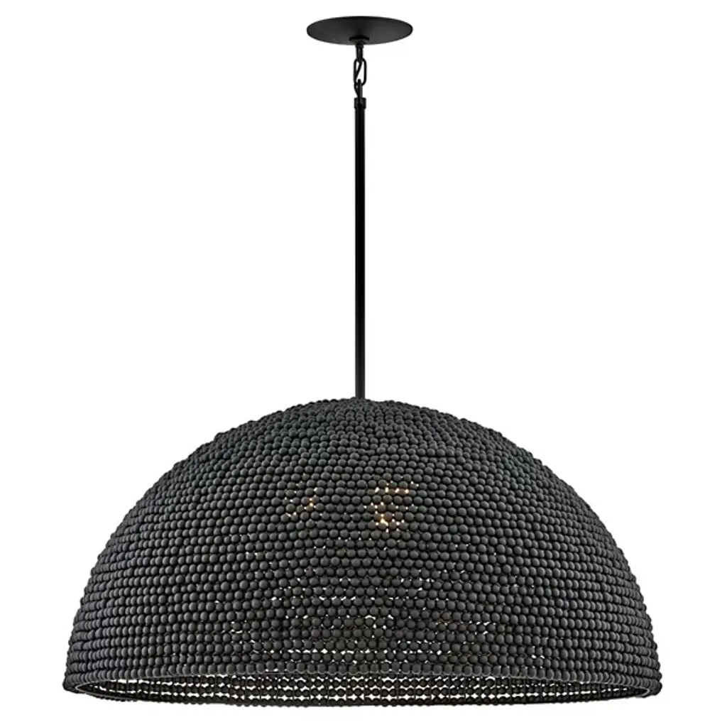The Dalia Chandelier from Hinkley is an intriguing luminaire that bathes your space in a warm, ambient glow. Crafted from durable steel, this pendant features a shade of wooden beads meticulously arranged to form a dome shape. Emitting LED light from above, Dalia creates a cozy and inviting atmosphere. When used with a separately sold ELV dimmer, your pendant boasts dimmable capabilities, allowing you to tailor the lighting to suit your occasion. Additionally, it is sloped-ceiling adaptable for versatility.