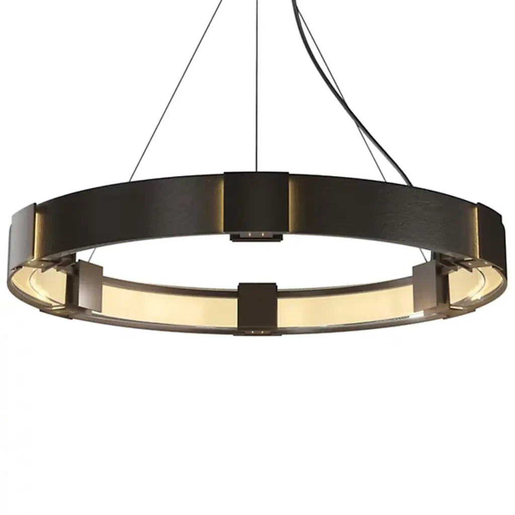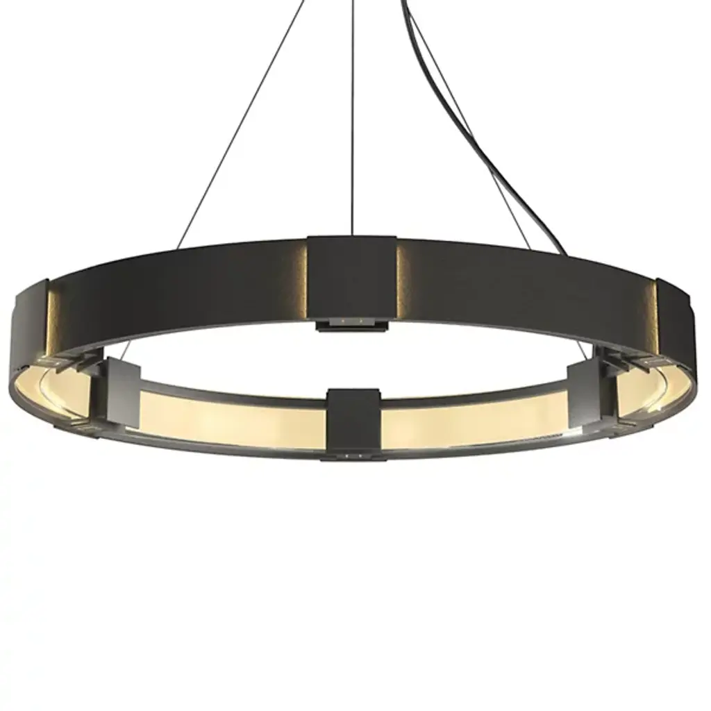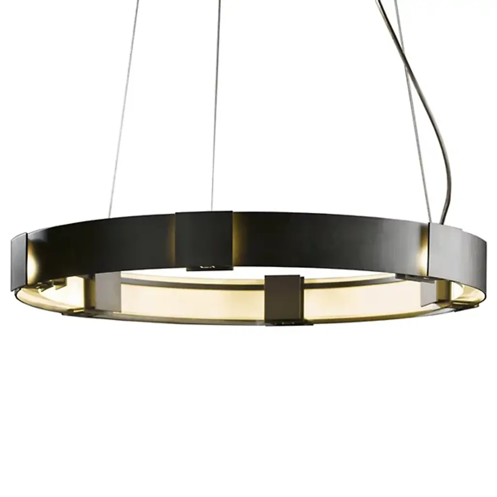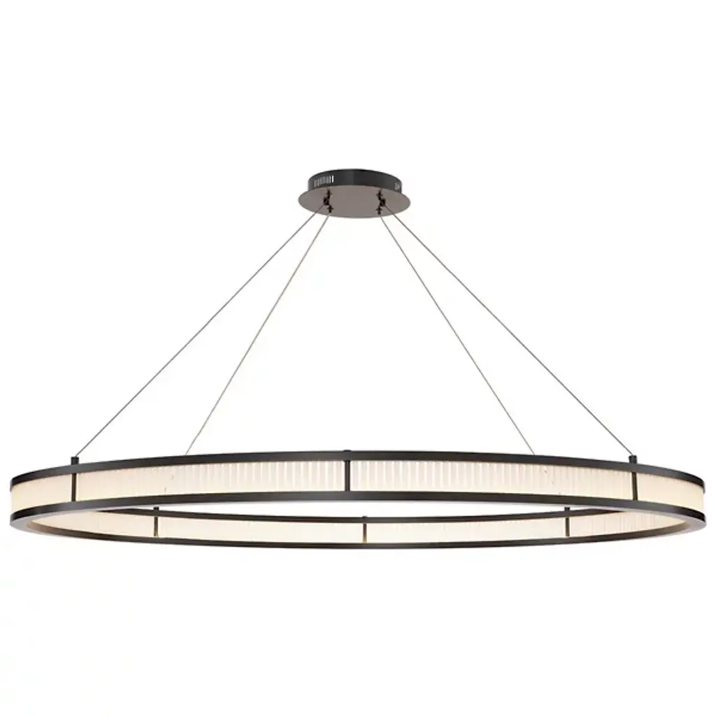 Make a memorable addition to large gathering spaces with the Damien LED Chandelier from Eichholtz. An open and elegant structure descending from a stepped disc ceiling mount via slim, strong cables, it uses a broad two-tier metal ring structure to support LED lamping inside it, gentled by evenly spaced rods of frosted glass secured just inside the outer rim of each ring. The translucent glass takes on a glow of its own, suffusing its surroundings with an elegant and lasting ambiance.