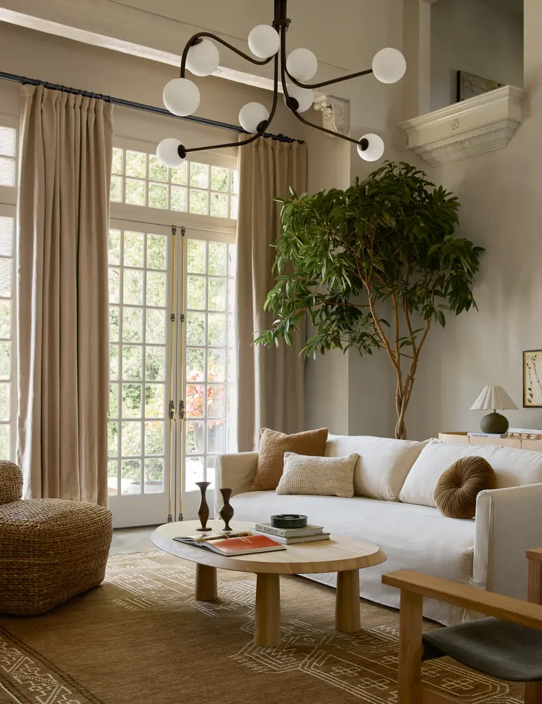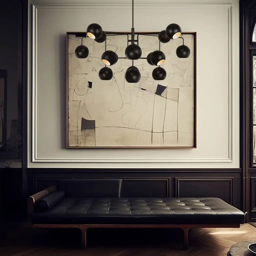 Transform your look from the top down with our Damon chandelier. Its serpentine arms hold nine globes aloft in an artful arrangement that catches the eye overhead. This large chandelier is set for statement lighting with a thoroughly modern feel.