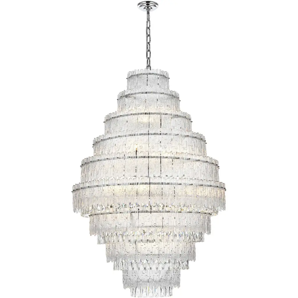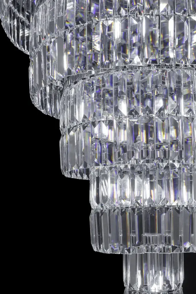 DANDY 70 is a crystal chandelier with metal structures produced handmade. Rectangular pendants in cut crystal Scholer.31 E14 x max 60WFinish- Black nickel, shiny gold, shiny chrome.- Other finishes on request.The Dandy collection is available in transparent color with fume'or amber details; in teal blue color with fume ' detail; in fume'color with teal blue detail. It is possible to request different colors of the pendants and details.