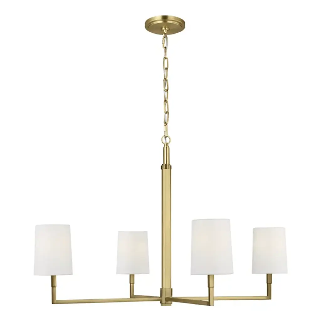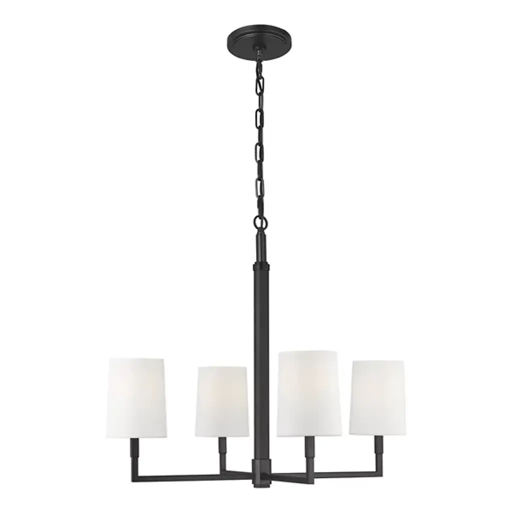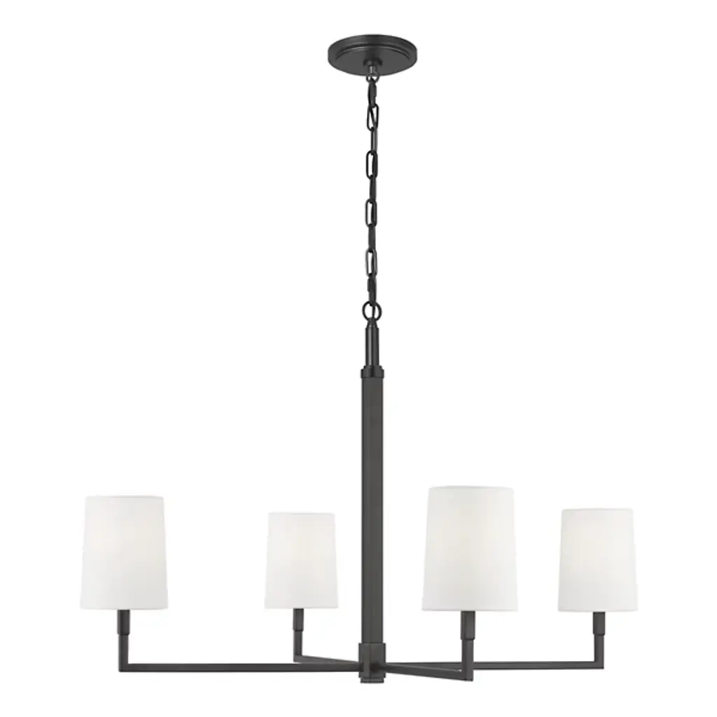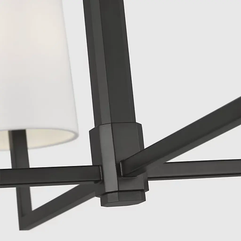 The Danica Chandelier from Visual Comfort Studio takes 1920s French design cues and filters them through Thomas O'Brien's modern sensibility. With its symmetrical arms and crisp geometric arrangement, this fixture brings a sense of structure without feeling rigid or cold. Its steel frame provides an architectural foundation, while linen fabric shades soften the light to create a welcoming atmosphere. Adaptable to sloped ceilings, this suspension offers installation flexibility that many chandeliers lack. Fully dimmable to suit any mood or occasion, this light bridges the gap between vintage references and present-day design needs.