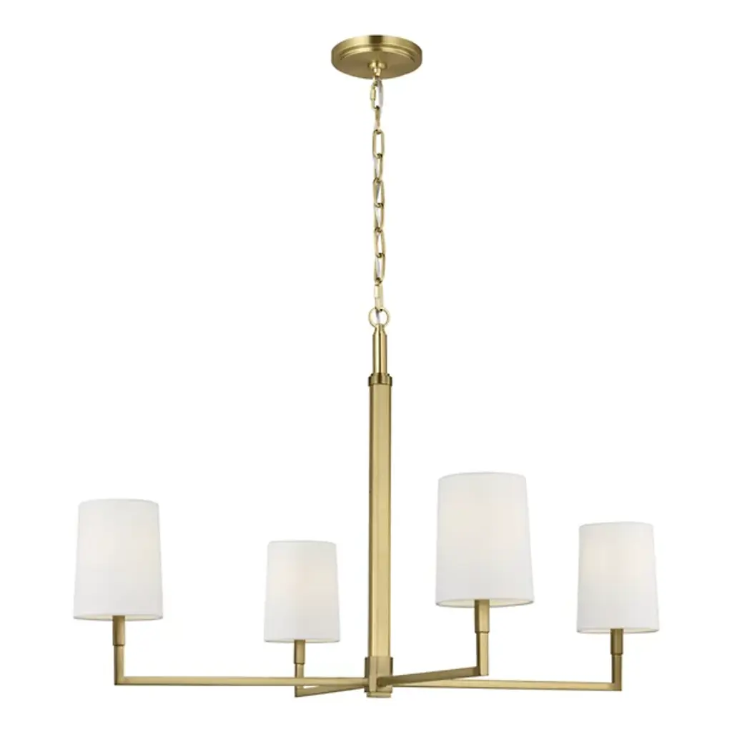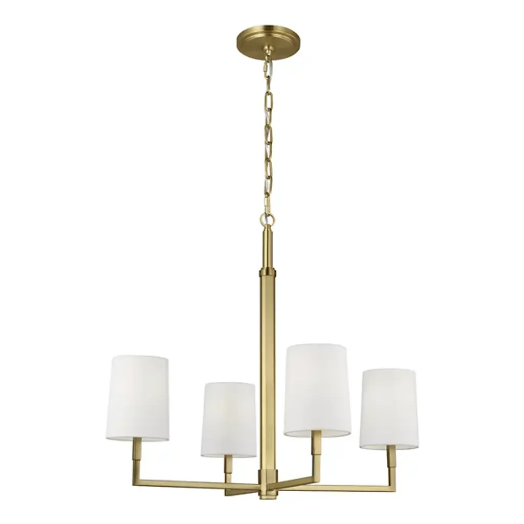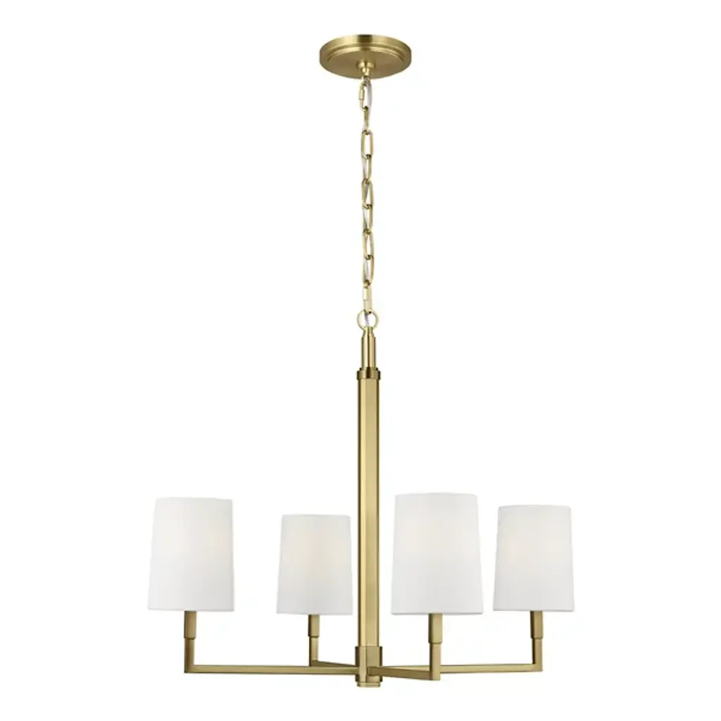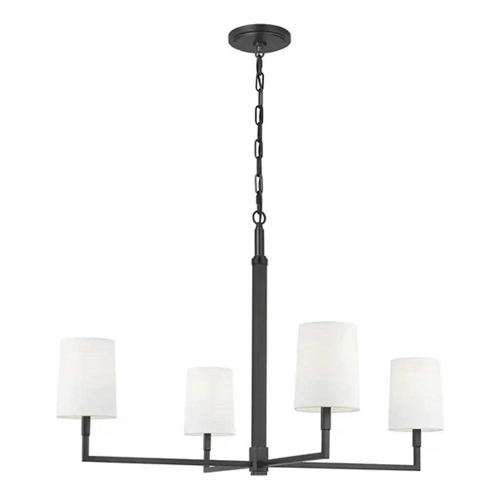 The Danica Chandelier from Visual Comfort Studio takes 1920s French design cues and filters them through Thomas O'Brien's modern sensibility. With its symmetrical arms and crisp geometric arrangement, this fixture brings a sense of structure without feeling rigid or cold. Its steel frame provides an architectural foundation, while linen fabric shades soften the light to create a welcoming atmosphere. Adaptable to sloped ceilings, this suspension offers installation flexibility that many chandeliers lack. Fully dimmable to suit any mood or occasion, this light bridges the gap between vintage references and present-day design needs.